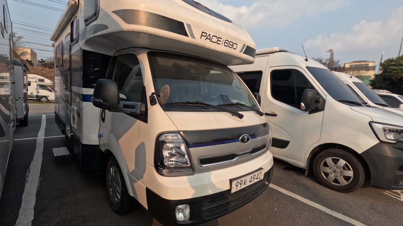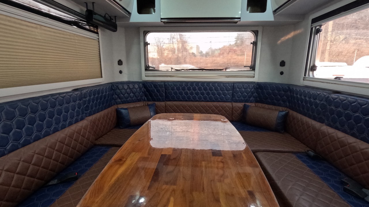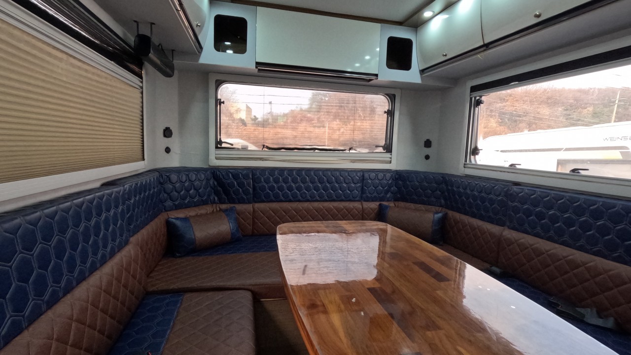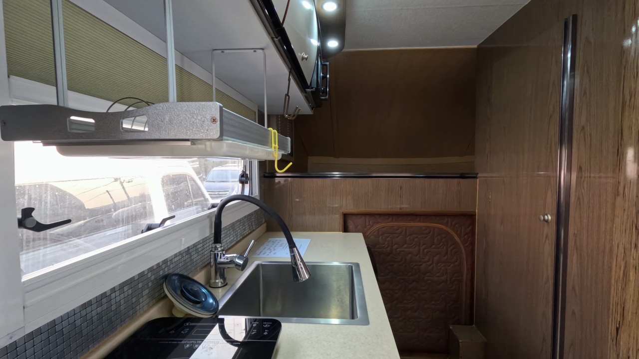 내부 : 벽걸이에어컨, 에바스D5 온수난방보일러, TV, 냉장고90L, 인덕션, 개수대, 청수150L, 오수80L, 욕실, 고정식변기