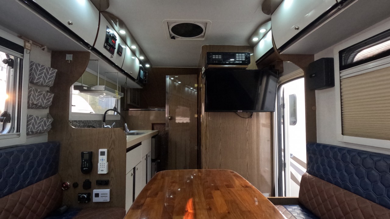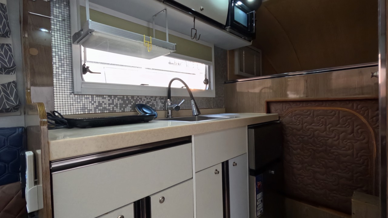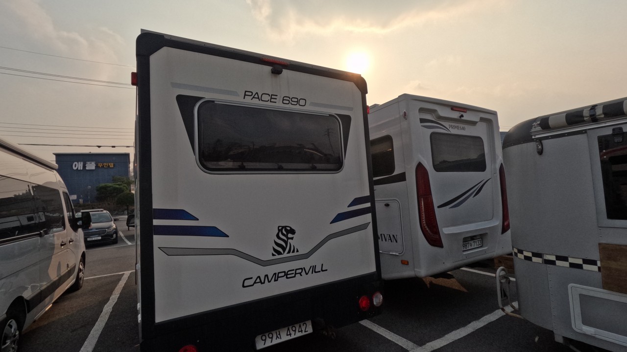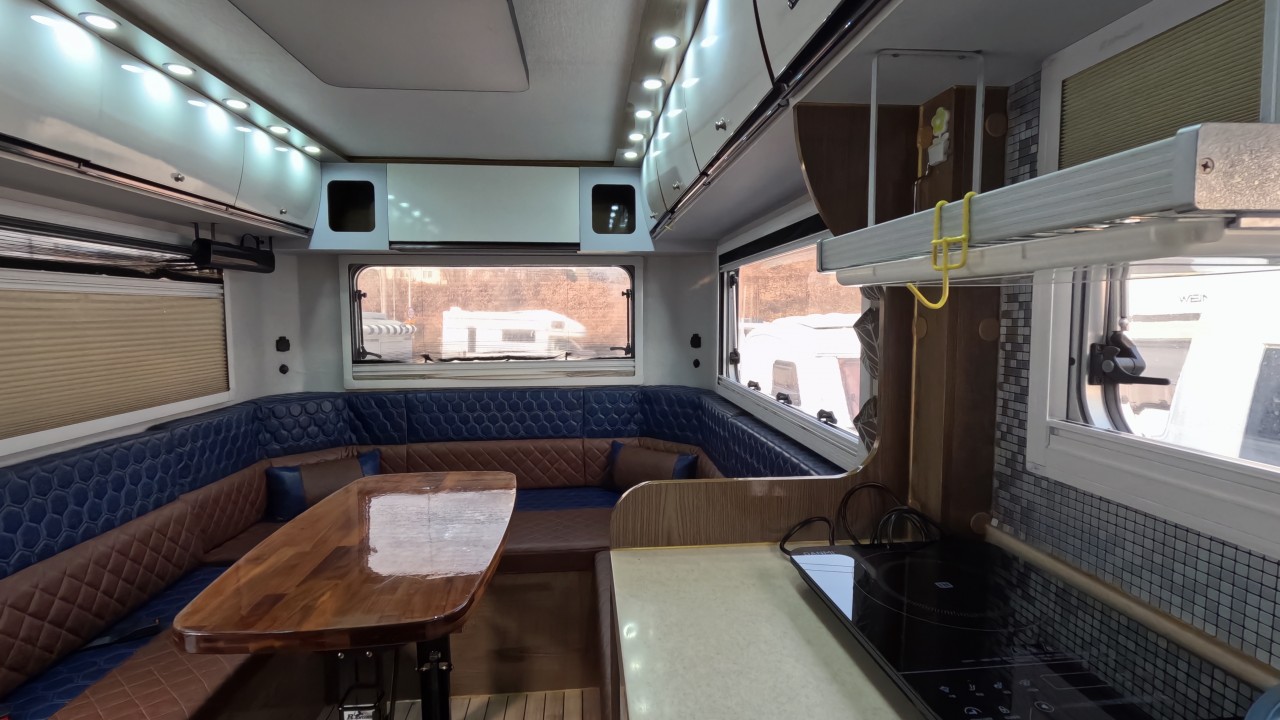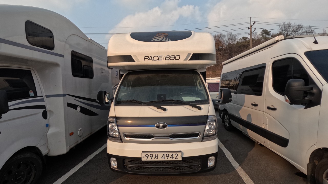 내부 : 벽걸이에어컨, 에바스D5 온수난방보일러, TV, 냉장고90L, 인덕션, 개수대, 청수150L, 오수80L, 욕실, 고정식변기
