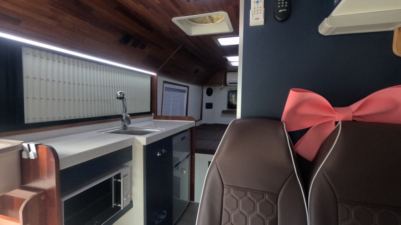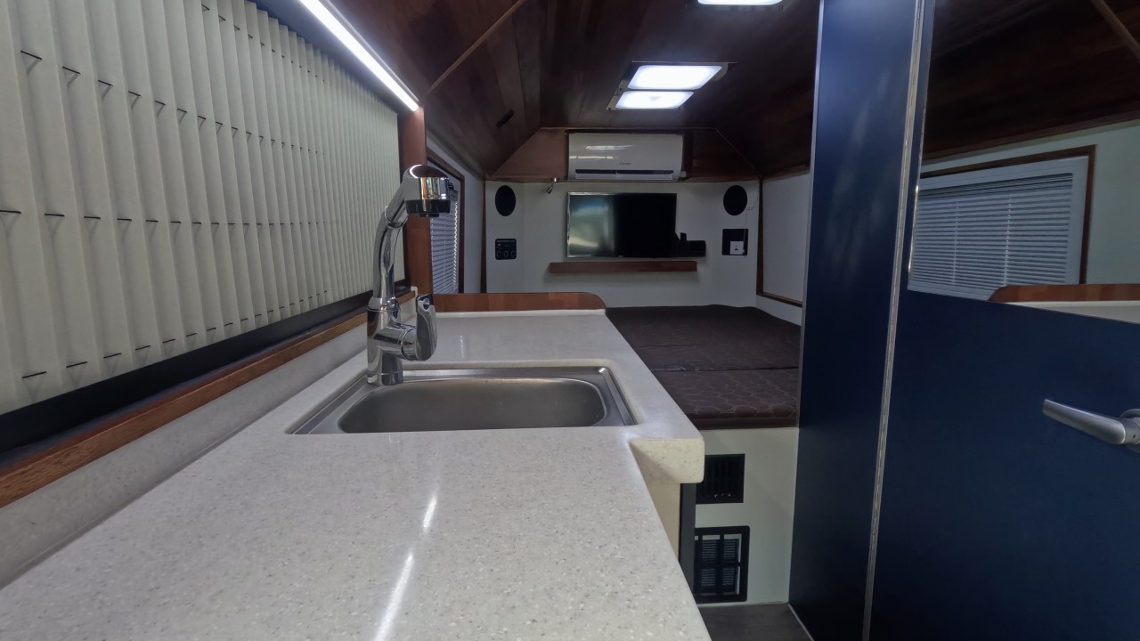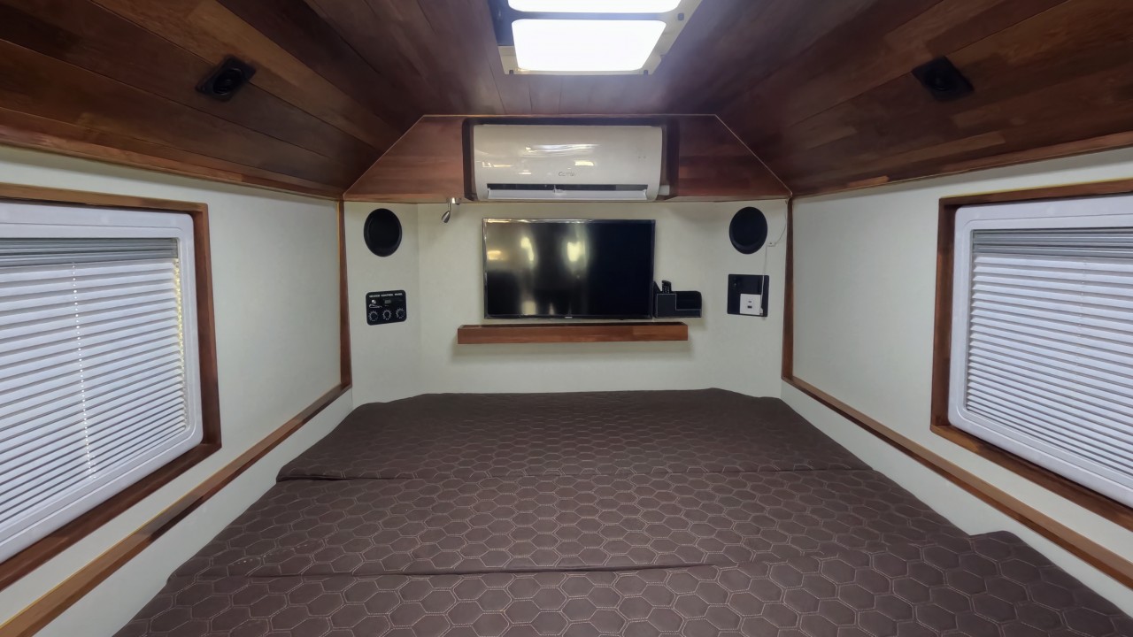 내부 : 벽걸이에어컨, 에바스D5, 온수난방보일러, TV2대, 냉장고, 전자렌지, 개수대, 청수300L, 오수80L 욕실, 이동식변기, 맥스팬, 자동퇴수시스템
