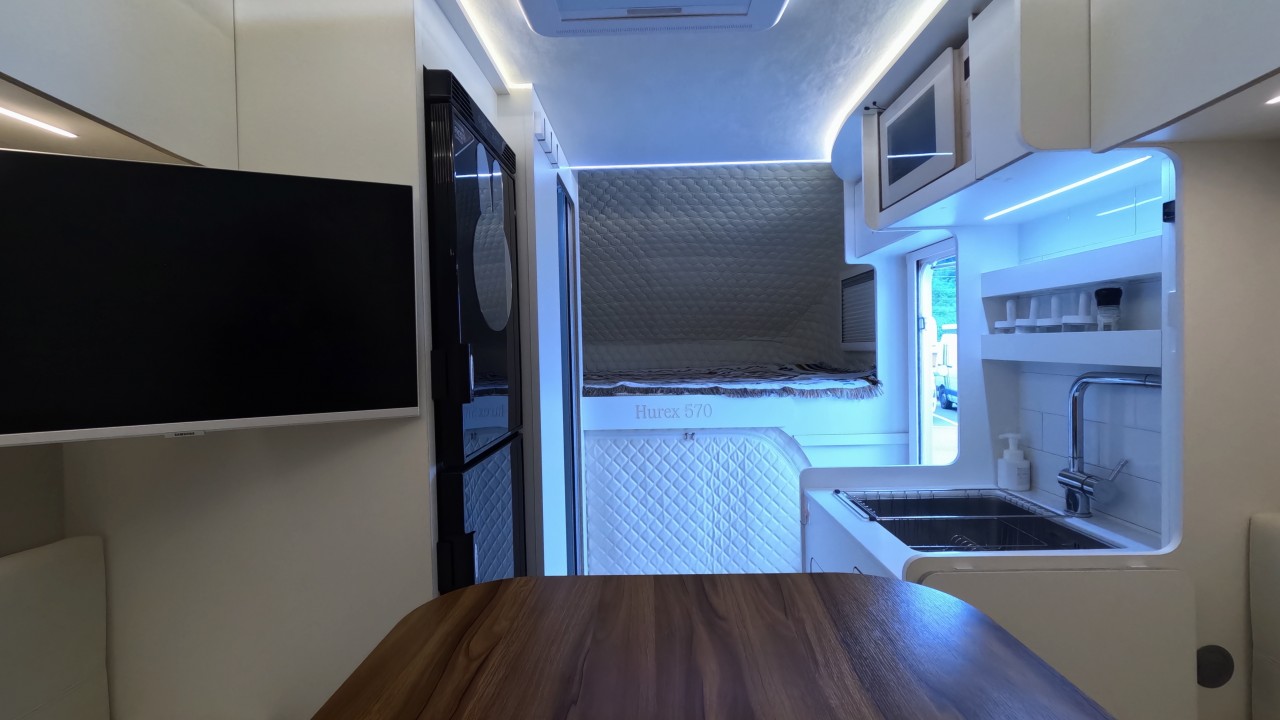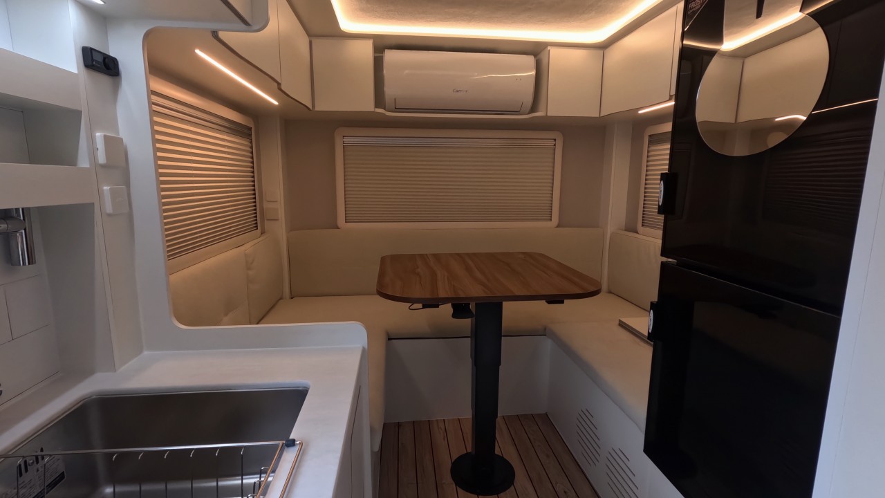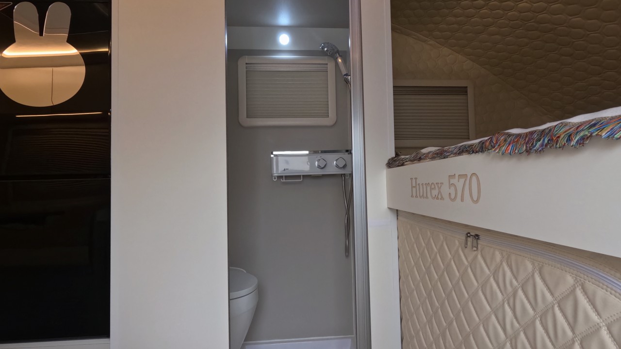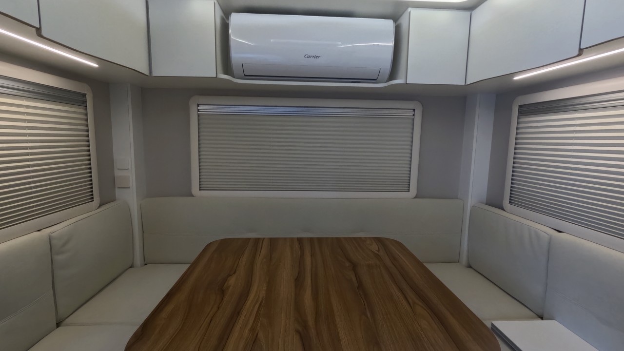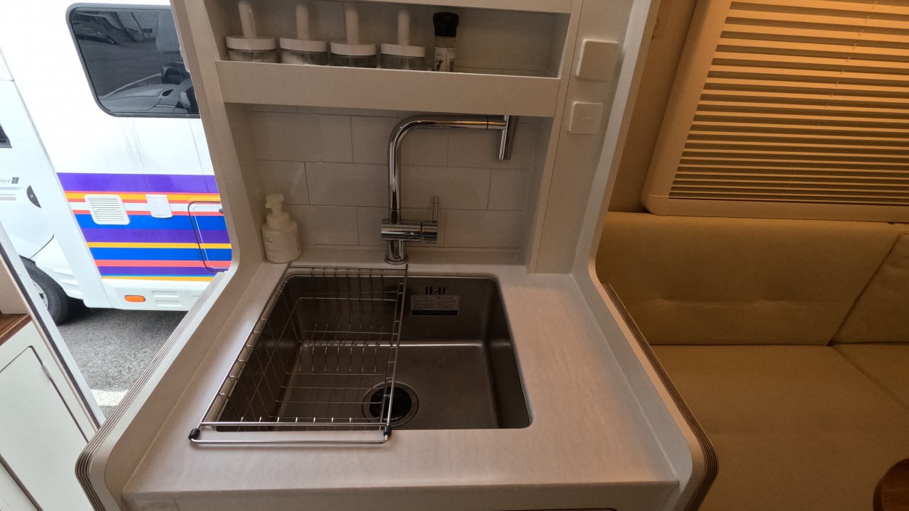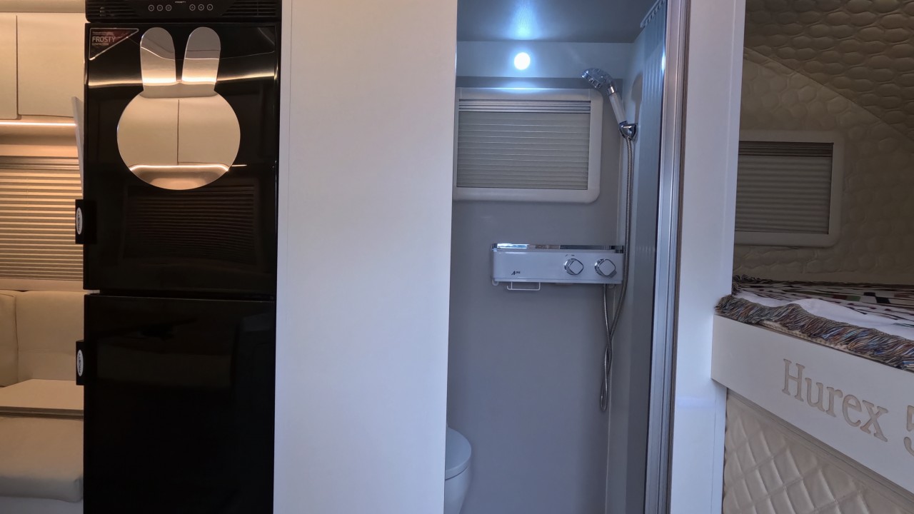 내부 : 벽걸이에어컨, 에바스D5 온수난방보일러, TV, 냉장고130L, 전자렌지, 개수대, 청수200L, 오수160L, 욕실, 고정식변기, 맥스팬