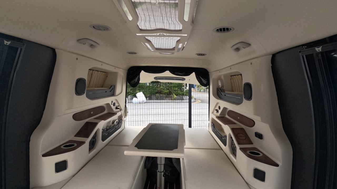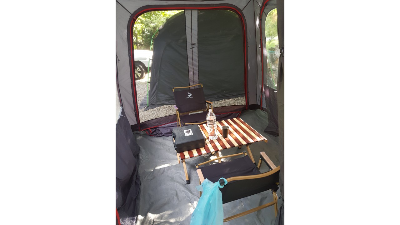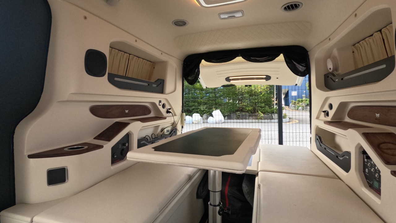 내부 : 에바스D2, TV, 냉장고, 전자렌지, 개수대, 청수10L, 오수10L, 3면 모기장