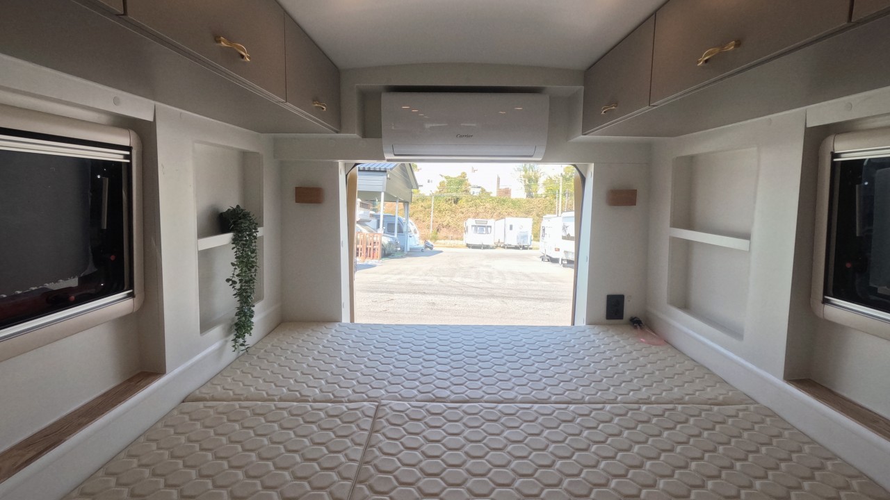 내부 : 베바스토EVO5, 온수, 온수매트, 맥스팬, 벽걸이에어컨, 개수대, 냉장고150L, 전자렌지, TV, 욕실, 고정식변기, 청수250L, 오수150L
