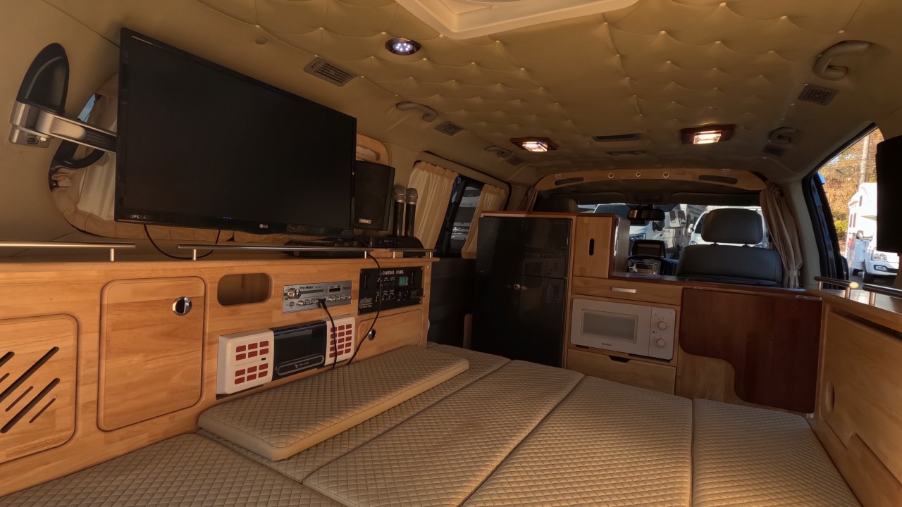 내부 : 에바스D2, TV, 냉장고90L, 전자렌지, 개수대, 청수20L, 오수20L, 이동식변기, 걸이식테이블, 측면암막커튼, 후면모기장, 맥스팬, 천장엠보싱, 노래방기기