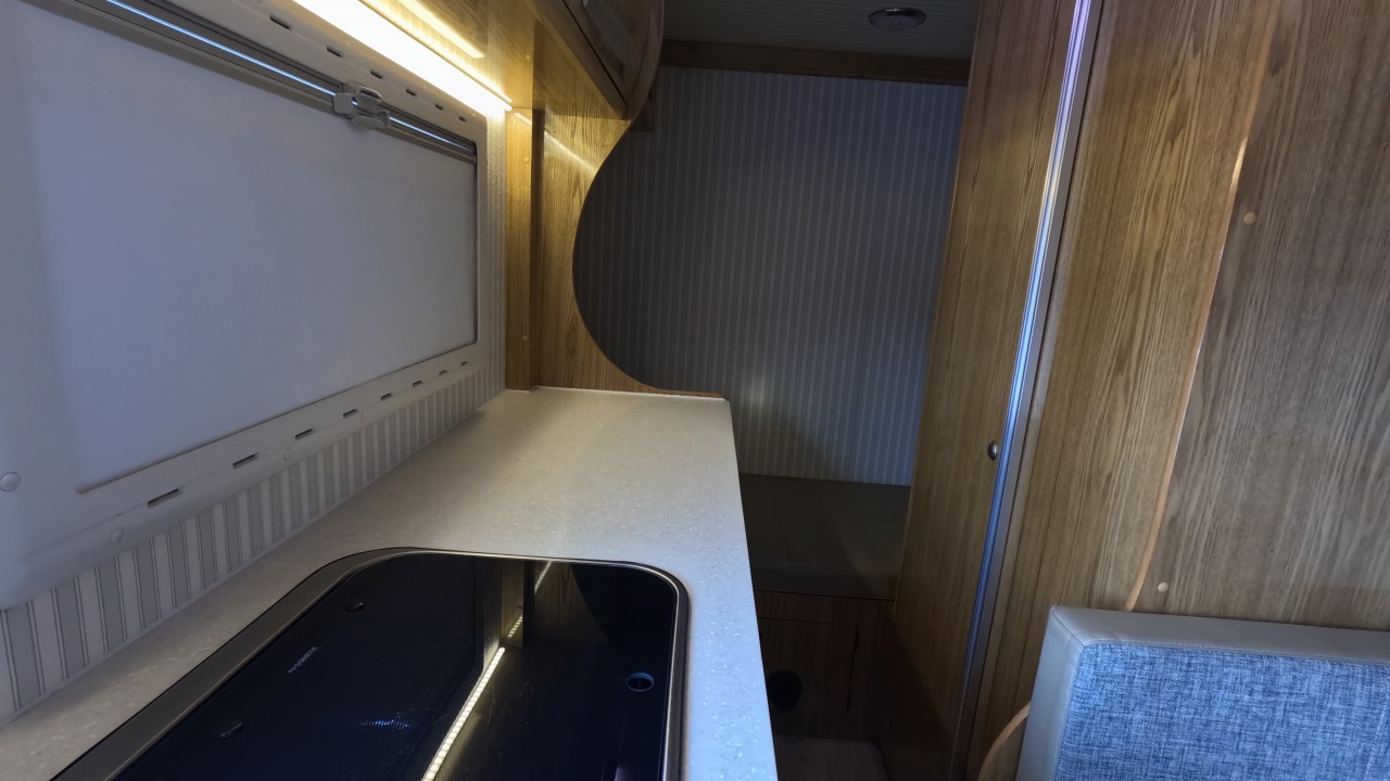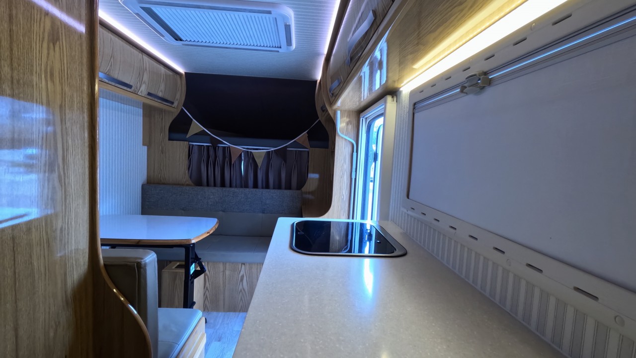 내부 : 벽걸이에어컨, 에바스D2, 온수, 냉장고90L, 전자렌지, 개수대, 청수150L, 오수80L, 욕실