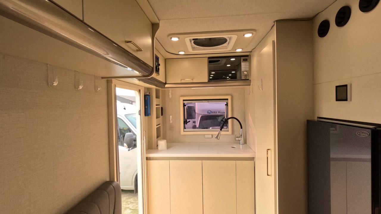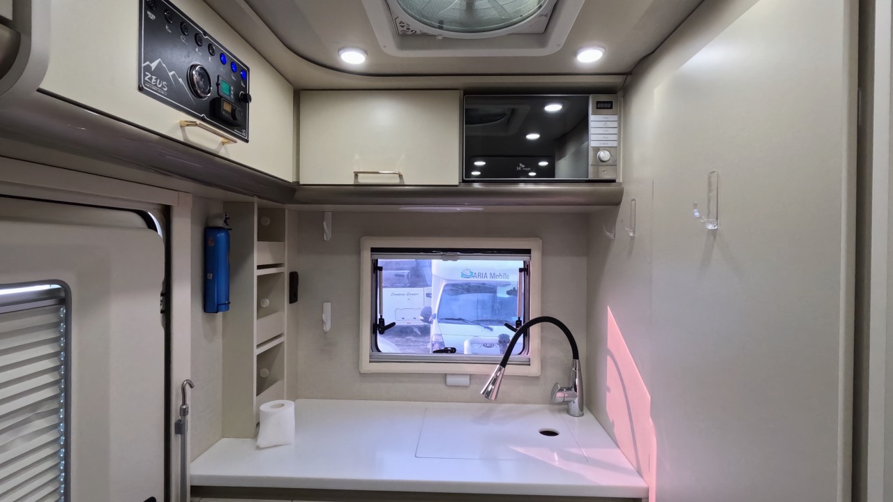 내부 : 에바스D5 온수난방보일러, 온수매트, 맥스팬, 벽면형에어컨, TV, 냉장고150L, 전자렌지, 개수, 청수200L, 오수100L, 고정식변기(SOG)