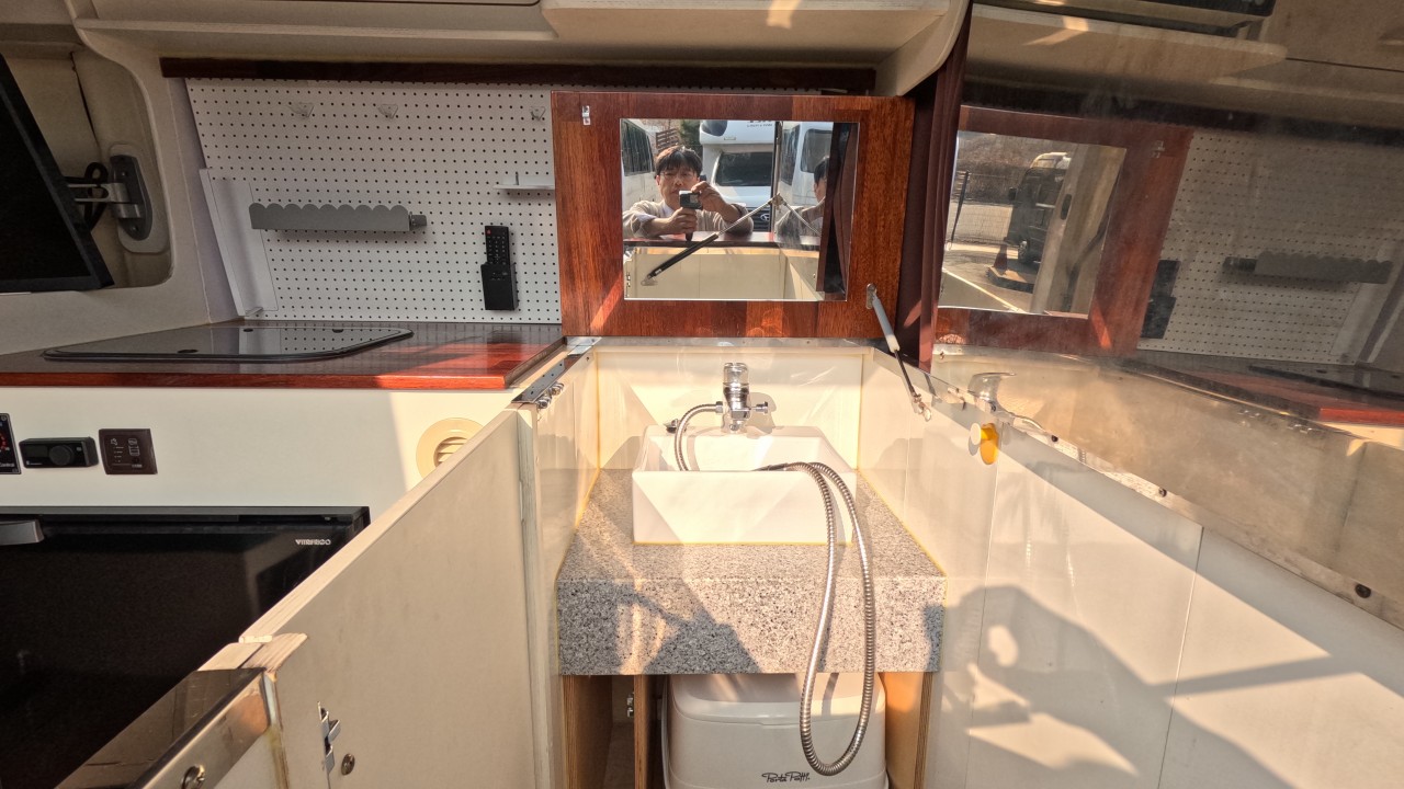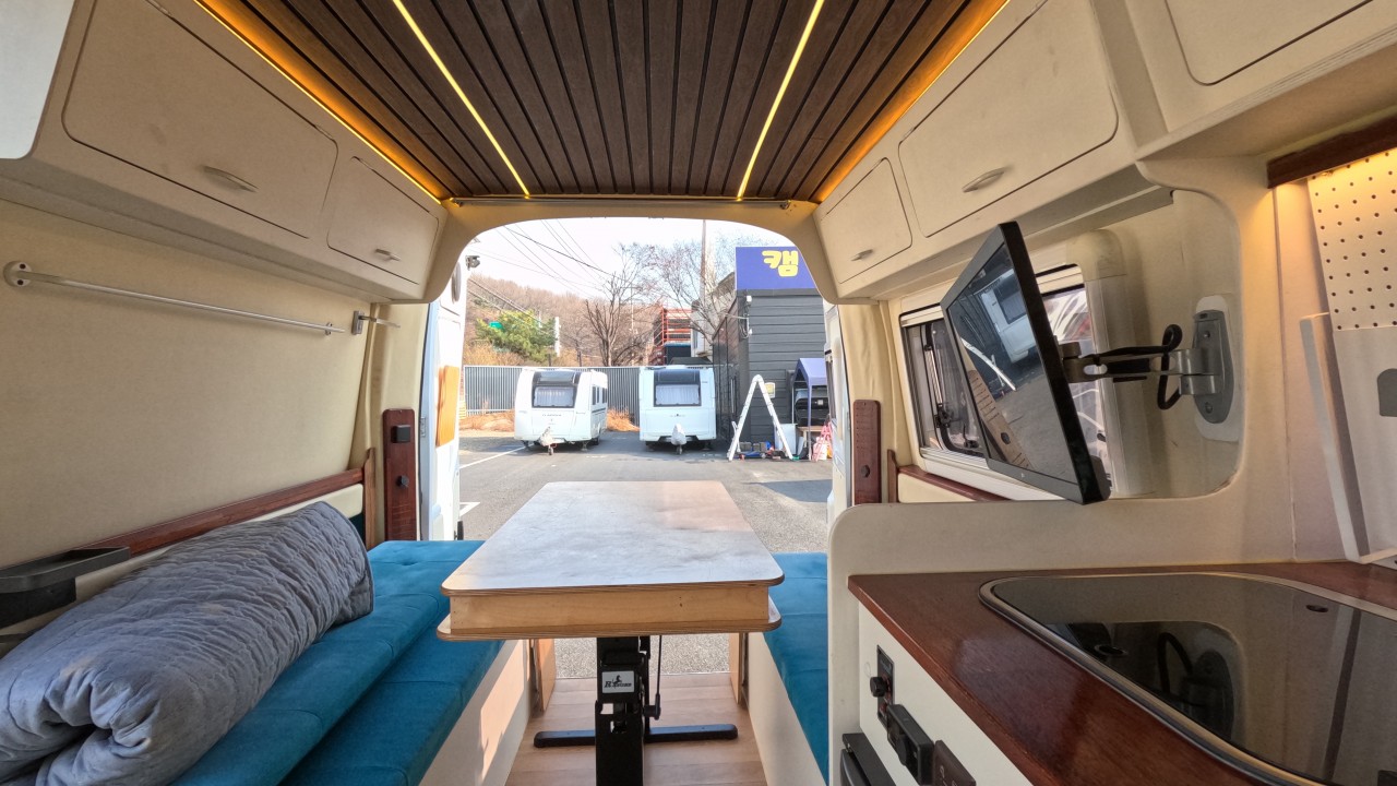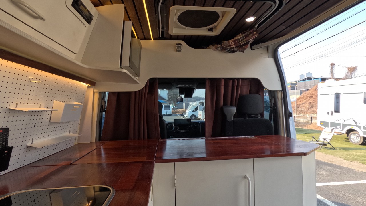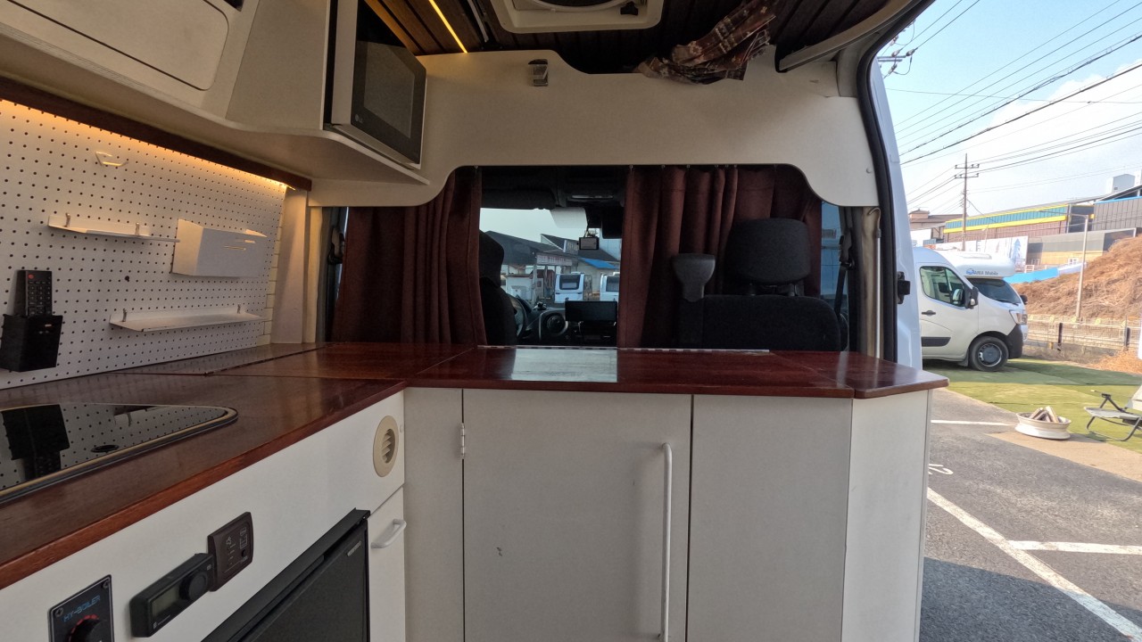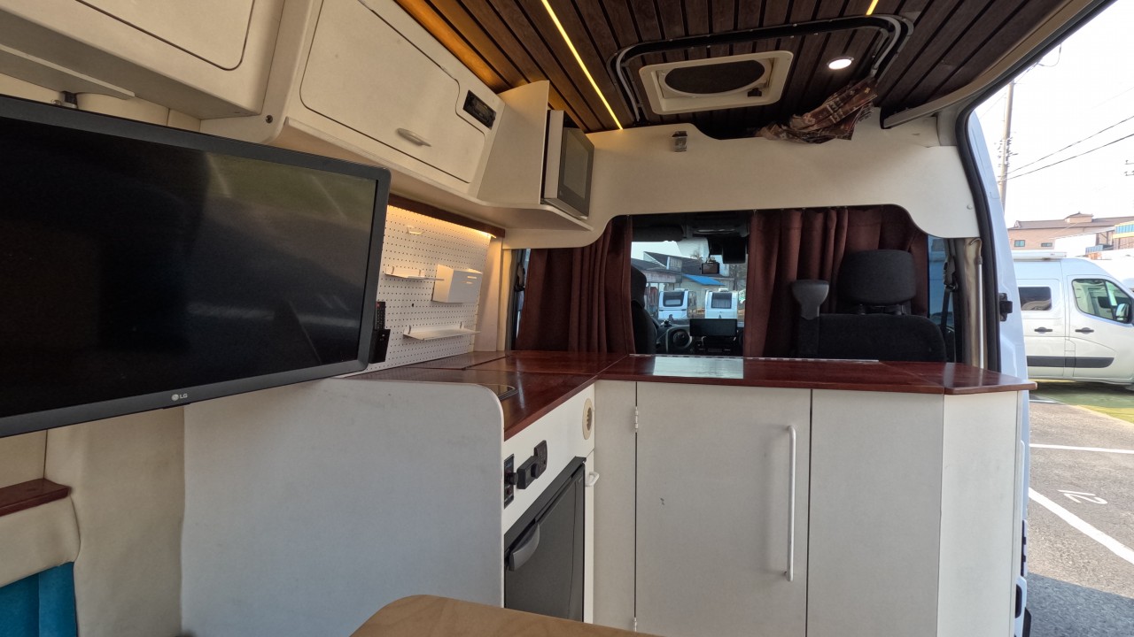내부 : 에바스D2, 변환식샤워실, 냉장고130L, 맥스팬, 접이식테이블, 청수115L, TV, 개수대, 샤워커튼. 암막커튼.