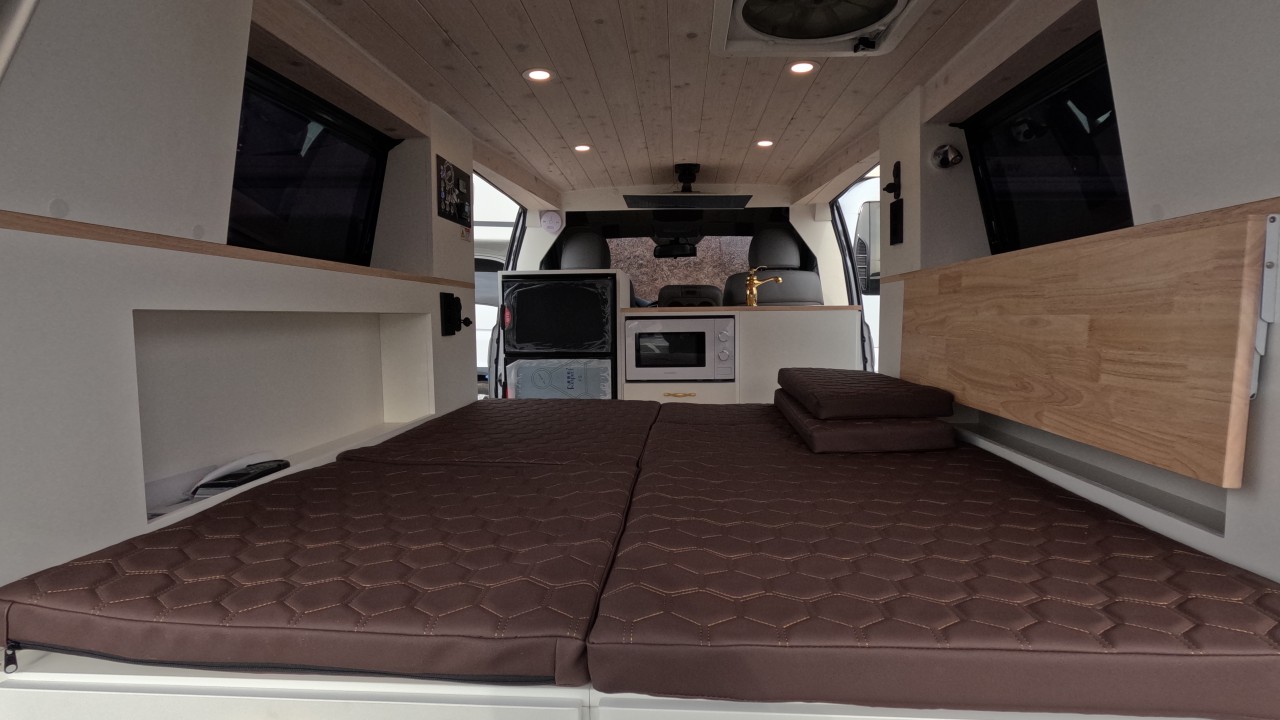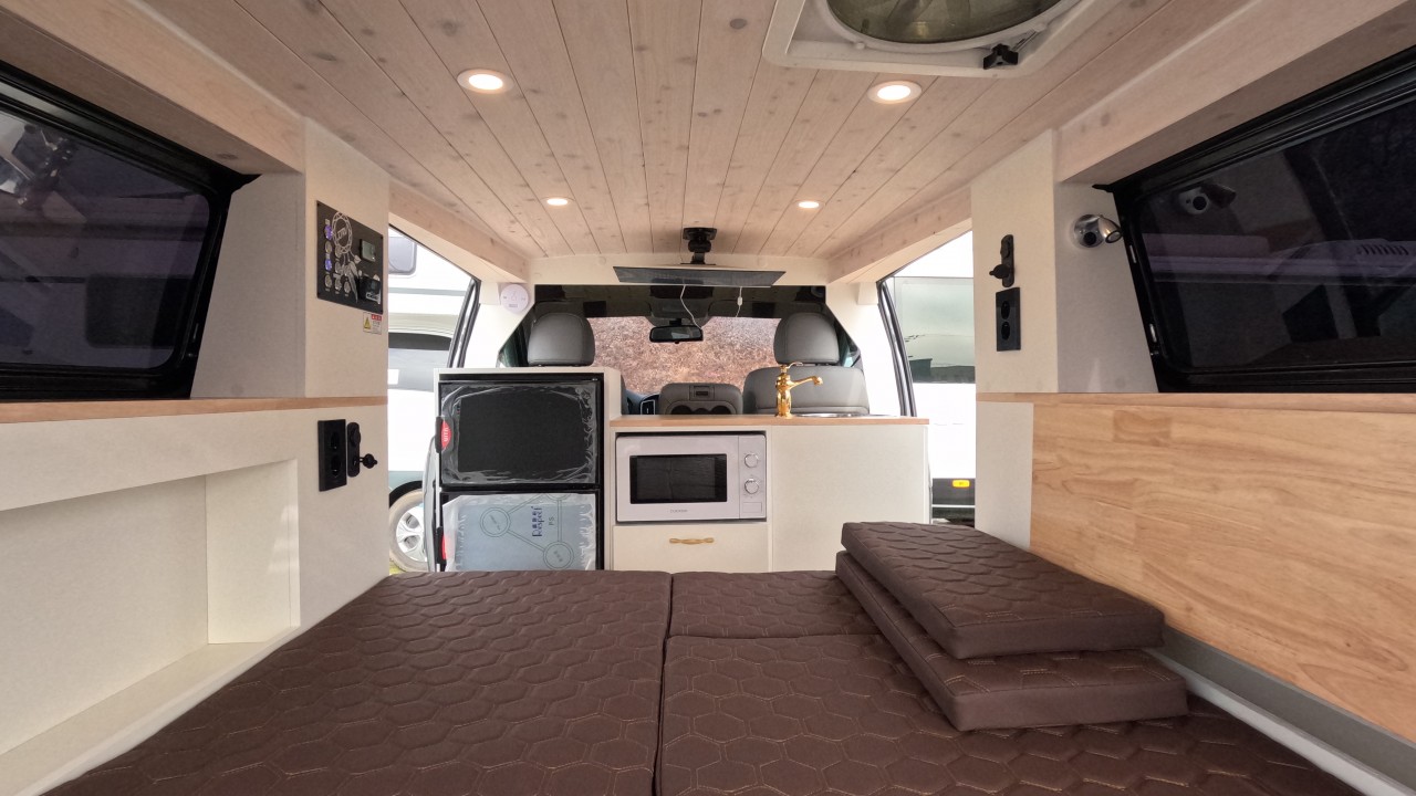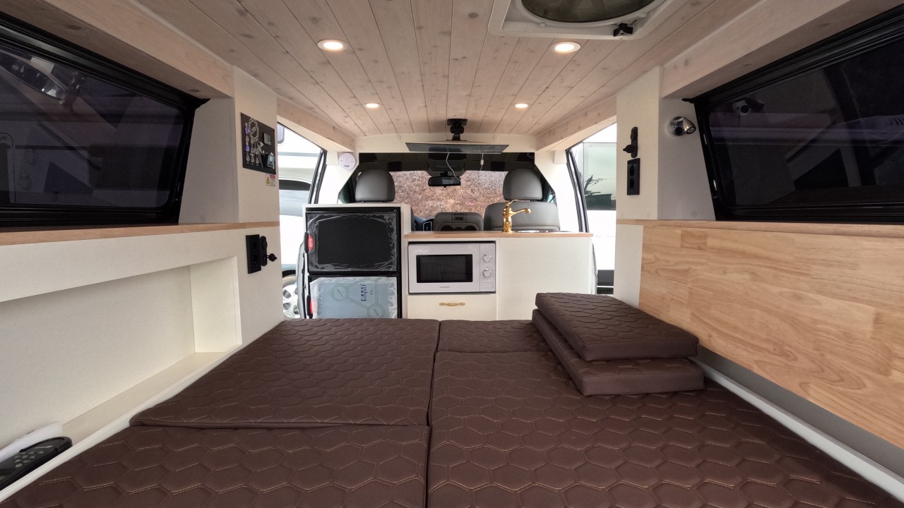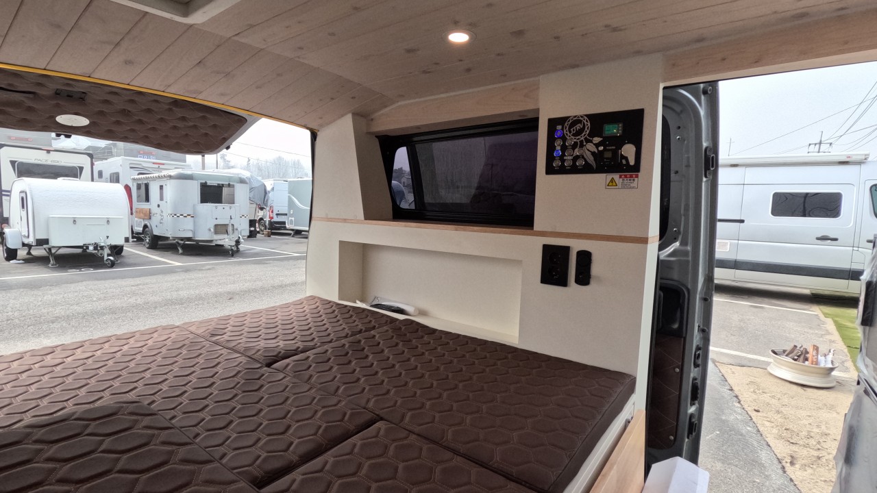 내부 : 에바스D2, TV, 냉장고, 전자렌지, 개수대, 청수20L, 오수20L, 맥스팬, 접이식선반, 하이패스