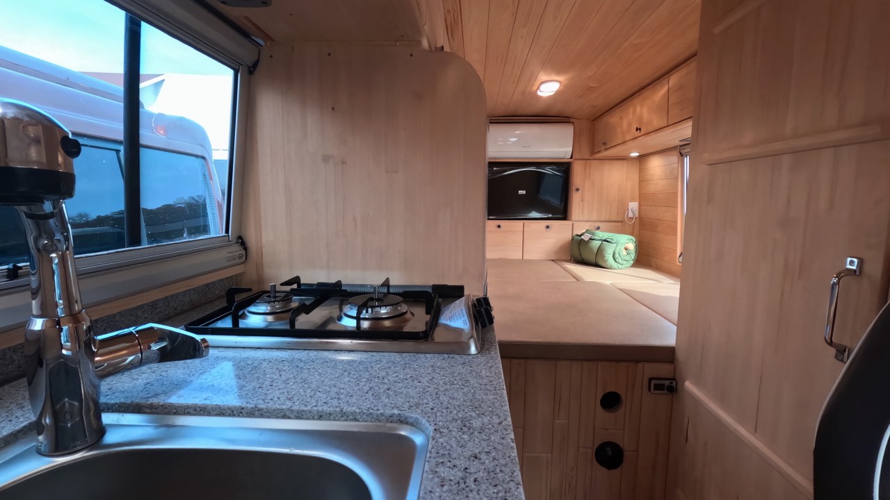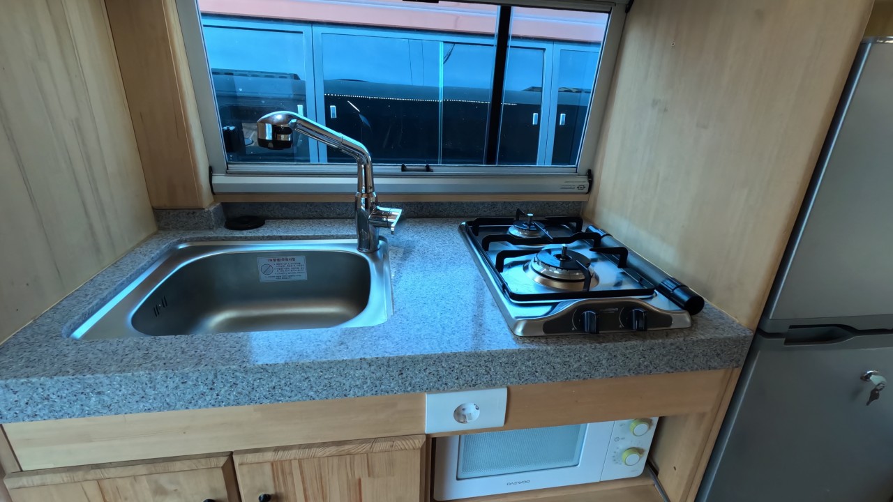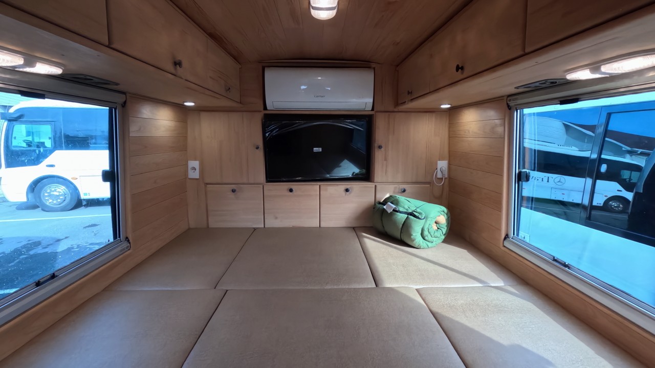 내부 : 무시동히터5K, 벽걸이에어컨, TV, 냉장고, 전자렌지, 가스렌지, 청수150L, 오수100L, 욕실, 맥스팬, 전기온수기