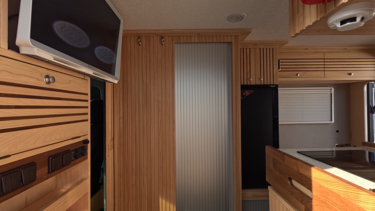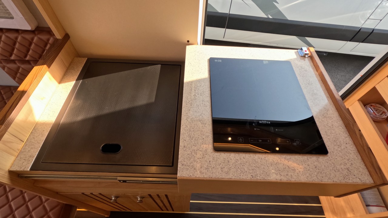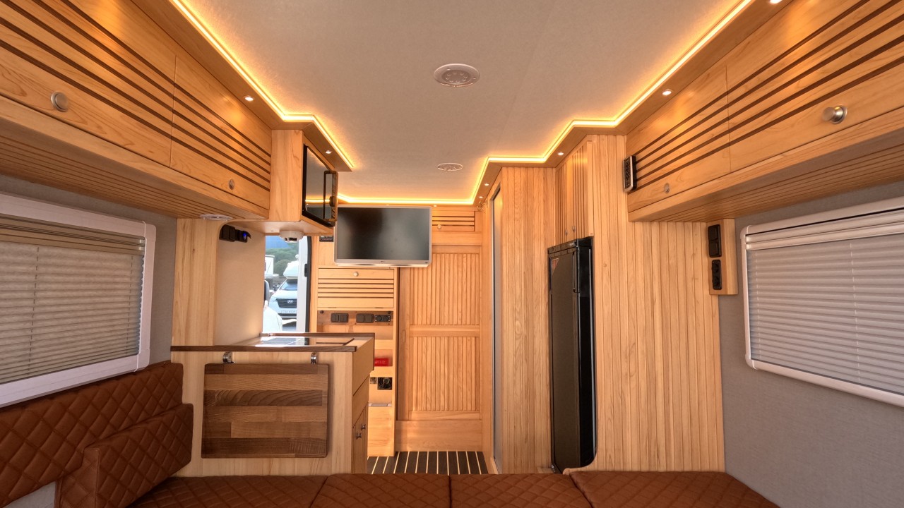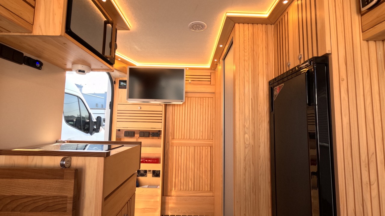 내부 : 전기차, 차체에어컨, 에바스D2, 에바스D5, TV, 냉장고130L, 전자렌지, 인덕션, 개수대, 청수150L, 오수100L, 욕실, 고정식변기, 전기필름(바닥난방)