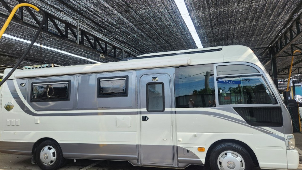 어닝 다리 파손, 카라반 출입문 모기장 창 미설치, 키 뭉치 없음, 타이어 교체 필요