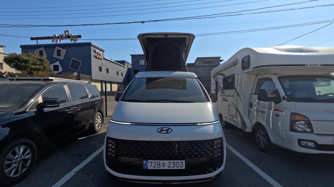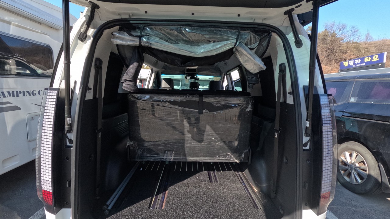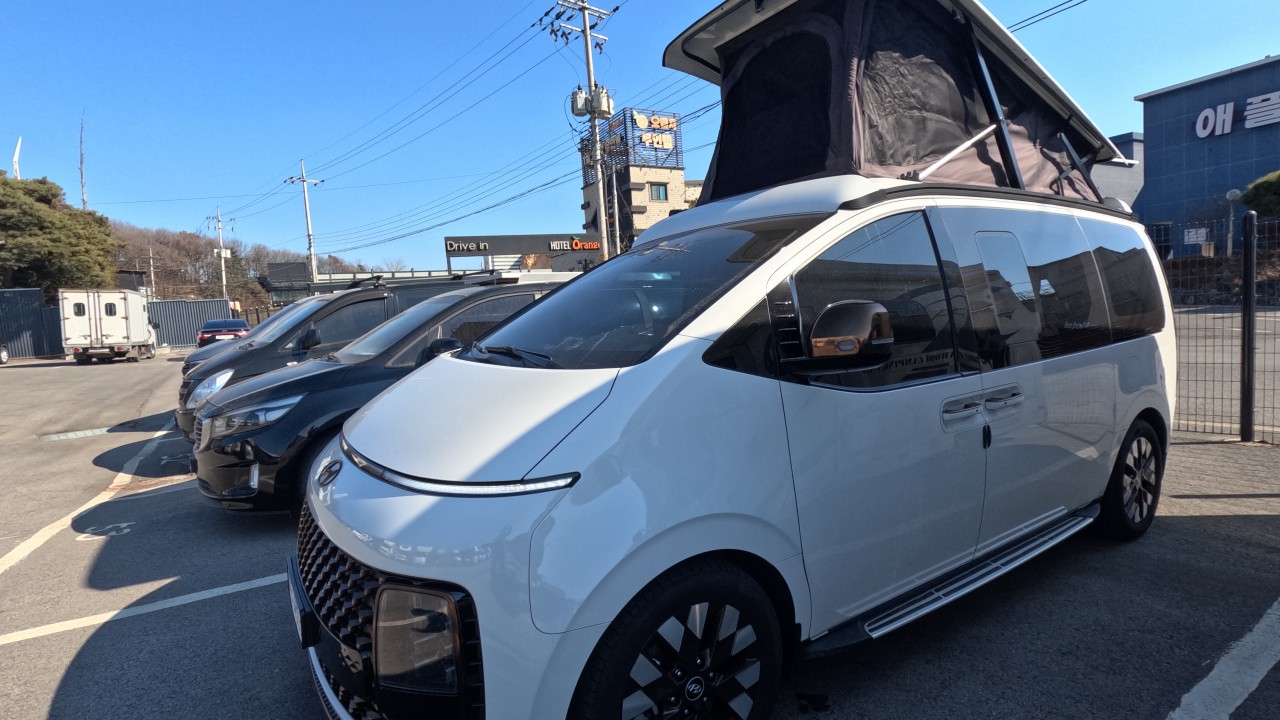 내부 : 무시동히터, 냉장고, 전자렌지, 개수대, 청수10L, 오수10L, 측면/후면 모기장, 전동팝업, 가림막텐트