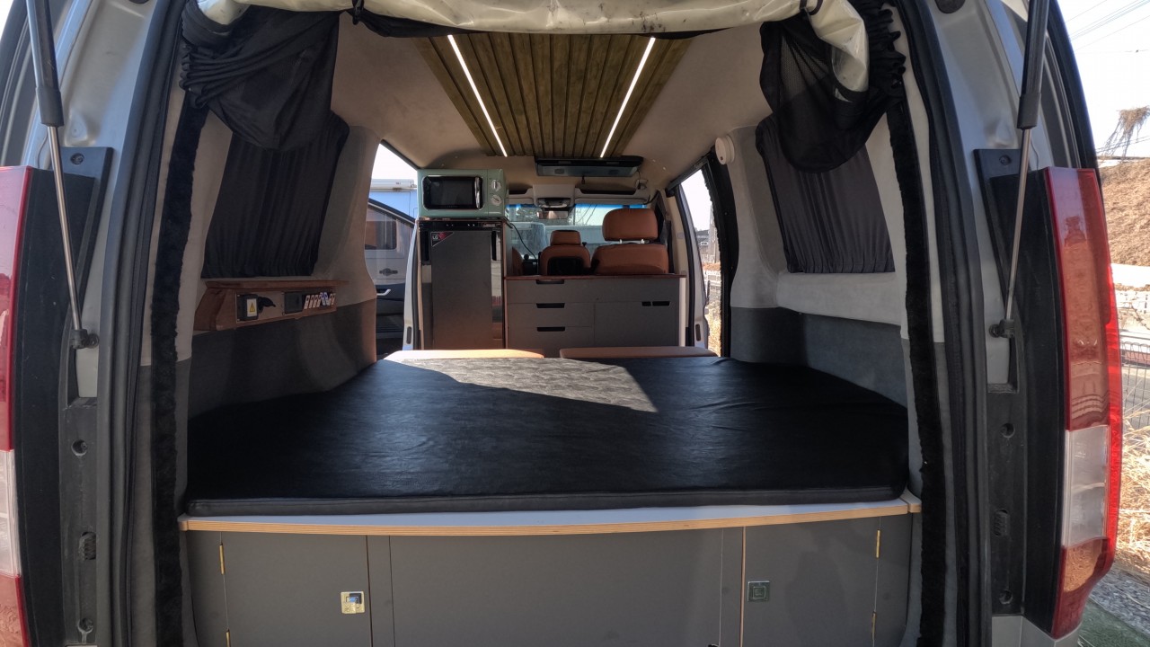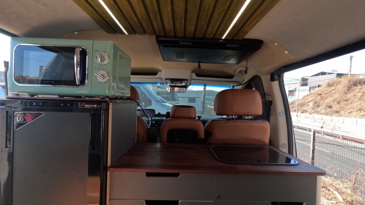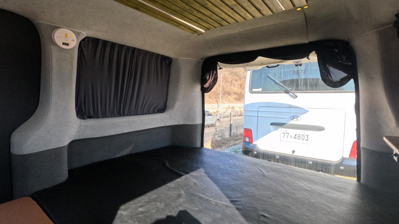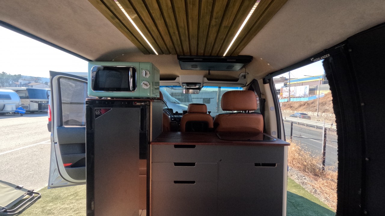 내부 : 무시동히터, 천장형TV, 냉장고, 전자렌지, 전면커튼, 개수대, 청수20L, 오수20L, 레일식수납함, 리무진시트, 암막커튼, 측면후면모기장