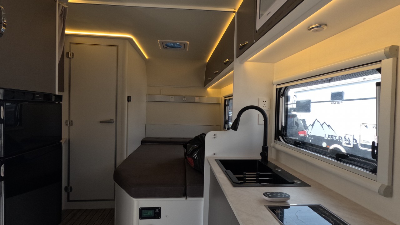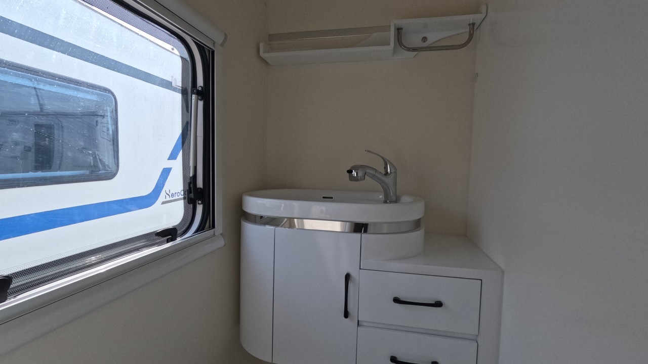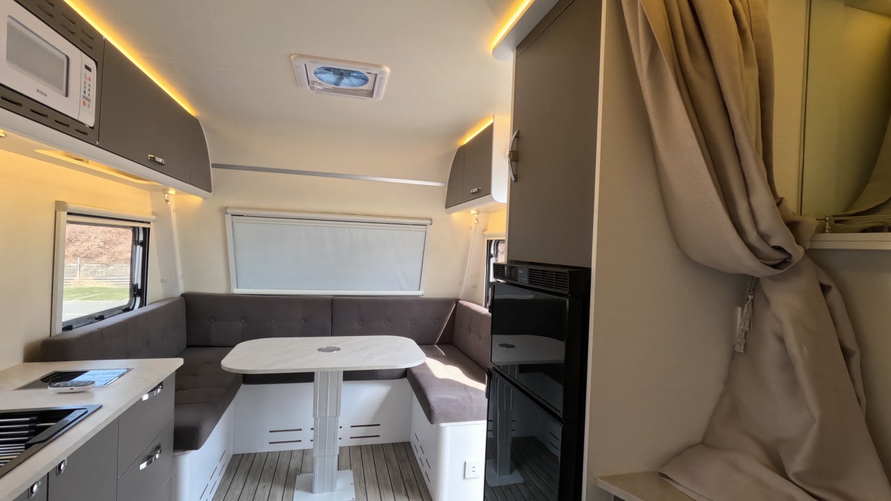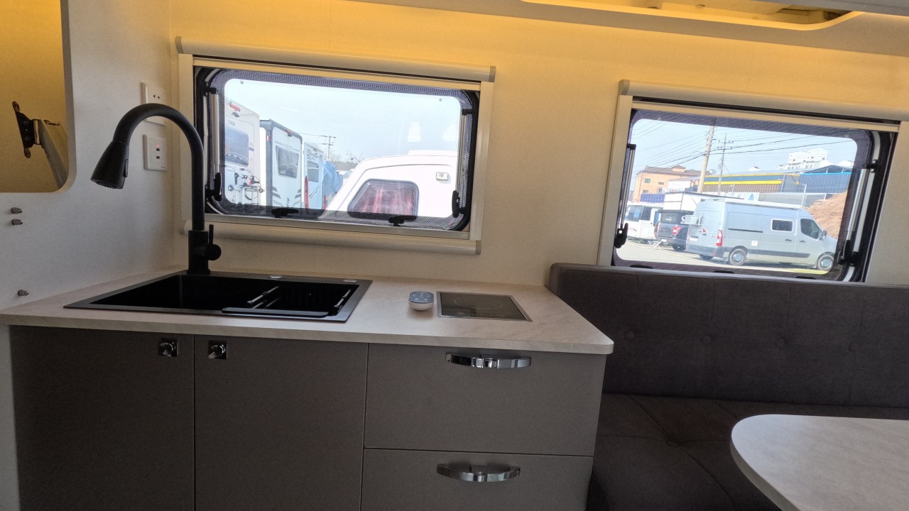내부 : 벽걸이에어컨, 무시동히터5K, 욕실, 이동식변기, TV, 냉장고100L, 전자렌지, 인덕션, 개수대, 청수100L, 이동식 오수통