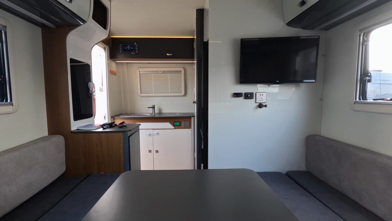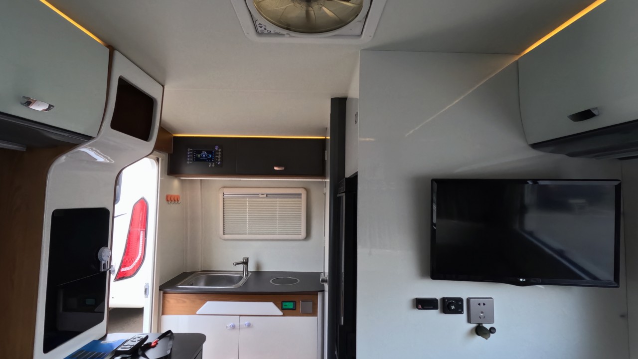 내부 : 무시동히터5K, 경유온수기, TV, 냉장고130L, 전자렌지, 인덕션, 맥스팬, 벽걸이에어컨, 개수대, 청수120L, 오수40L, 욕실
