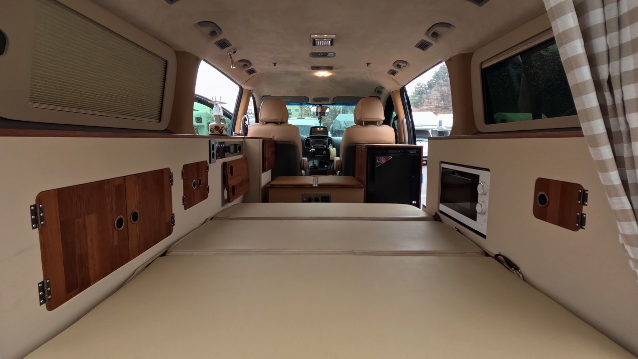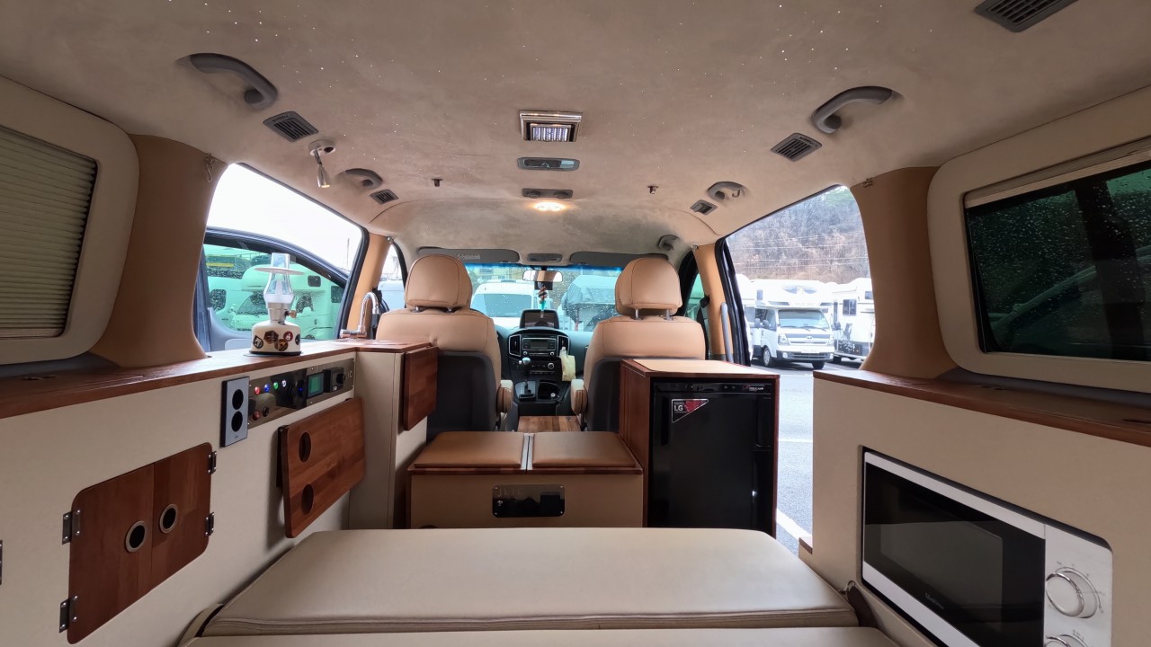 내부 : 무시동히터2K, 냉장고45L, 전자렌지, 개수대, 은하수무드등, 리무진시트, 멀티시트, 빔프로젝트