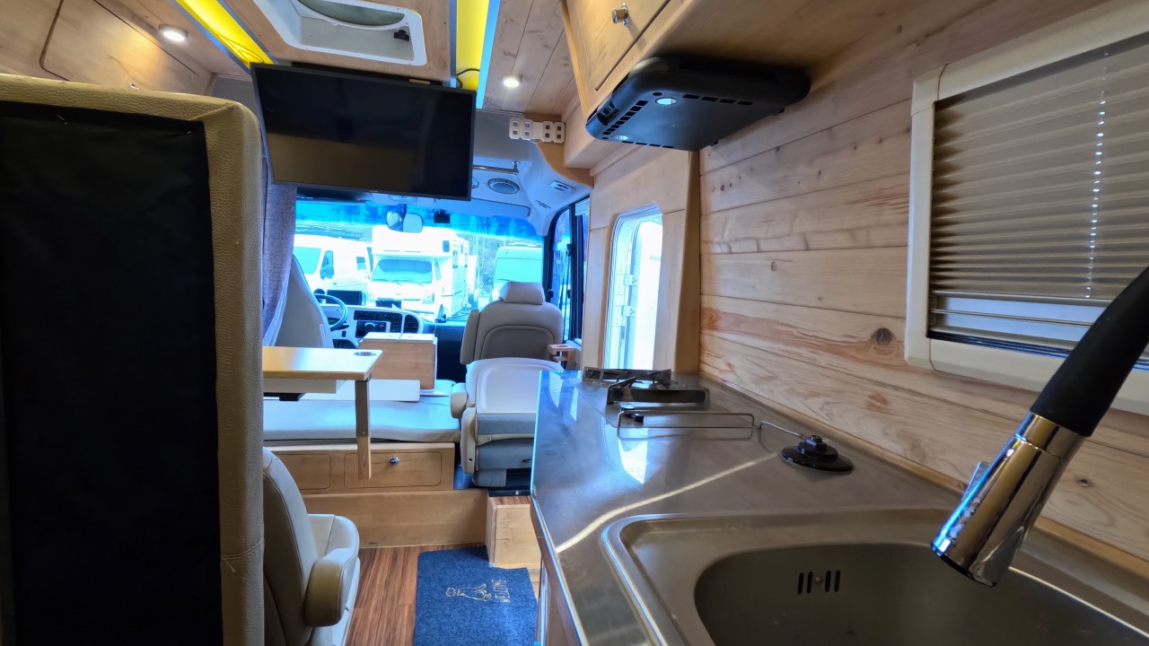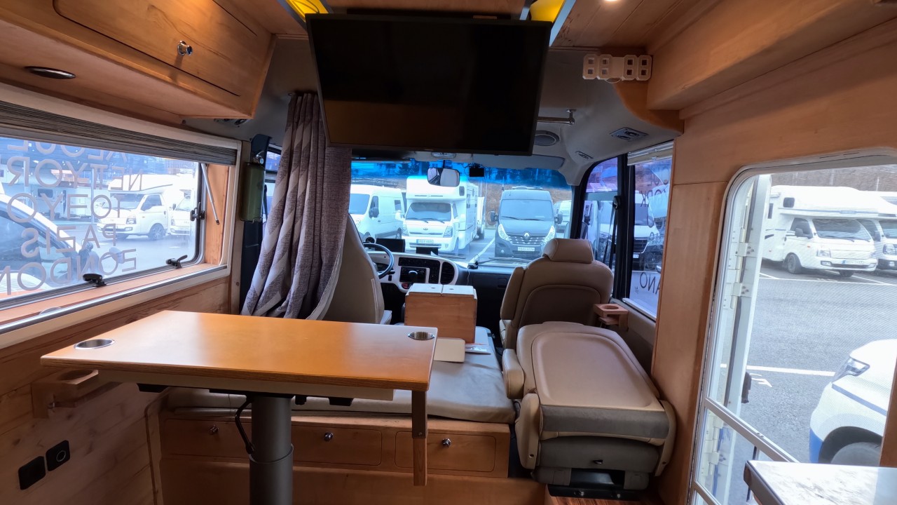 내부 : 맥스히터, 온수, 바닥난방, TV, 냉장고150L, 가스렌지, 전자렌지, 개수대, 청수200L, 오수100L, 욕실, 맥스팬2개, 고정식 변기, 주방환풍기, * 2023년 JJRV 전체 리모델링