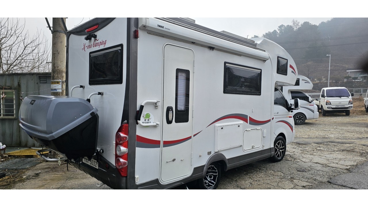 캠핑카뒷쪽 캐리어울트라박스 설치되어있음