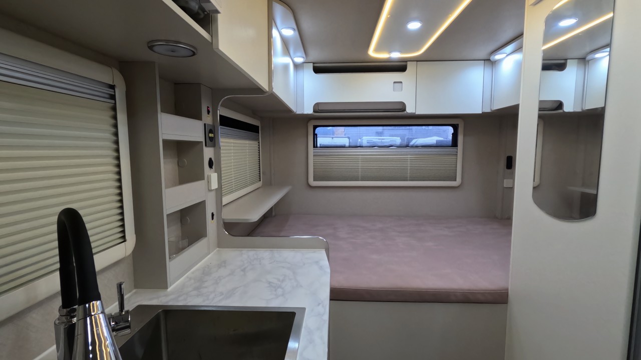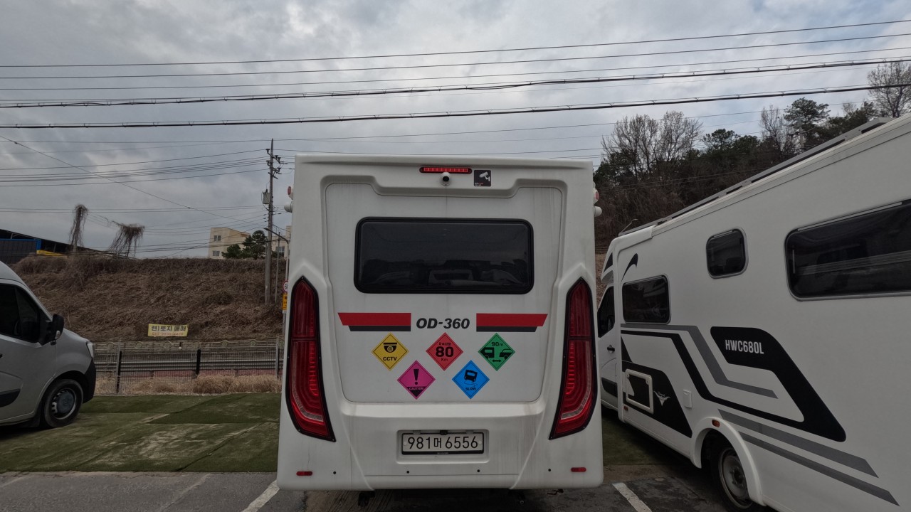 외부 : 전동어닝, 어닝레일, 네비게이션, 블랙박스, 후방카메라, 6채널CCTV, 아웃트리거,하부보강(판스프링, 코일스프링, 후륜휠확장)