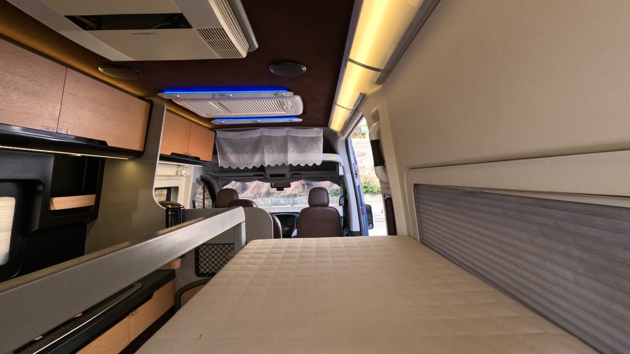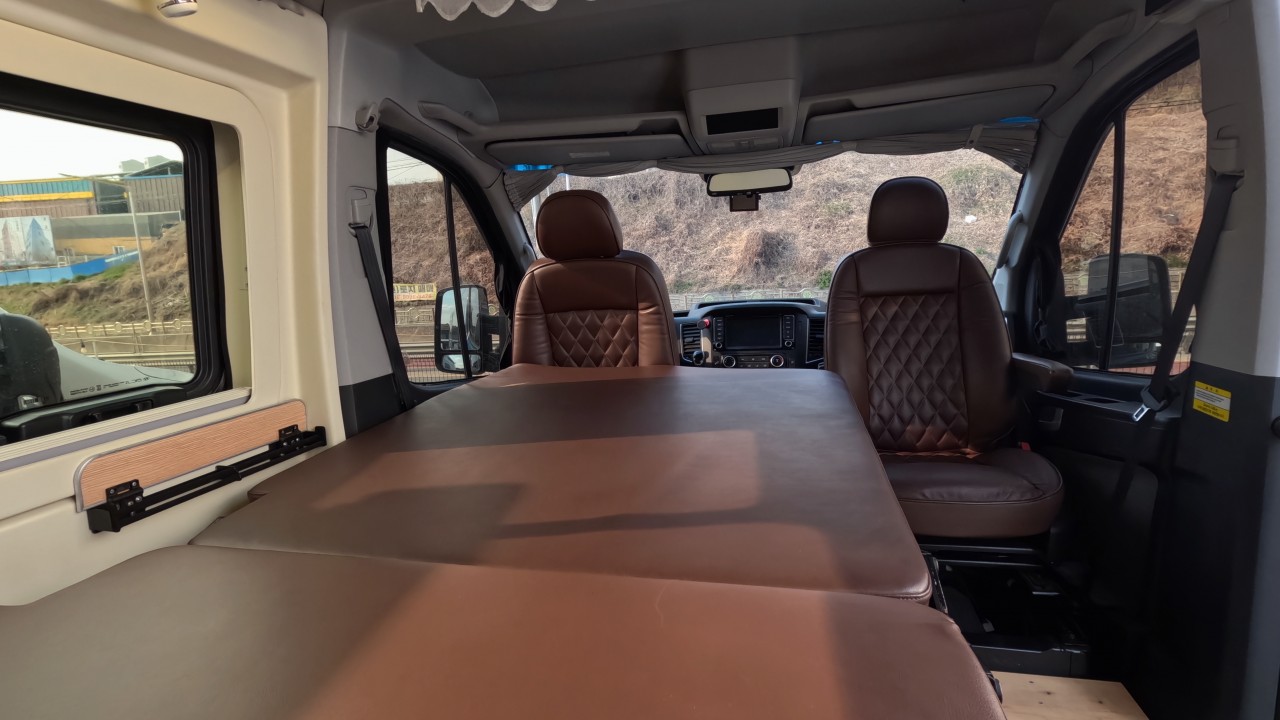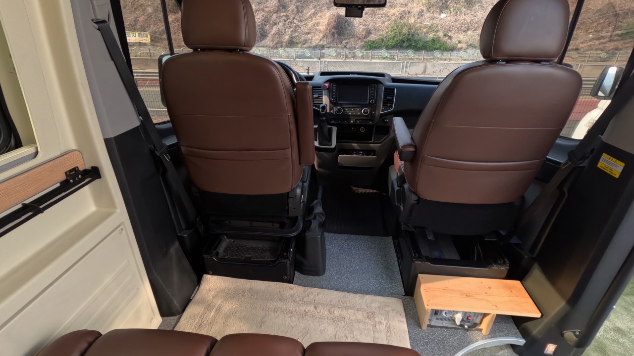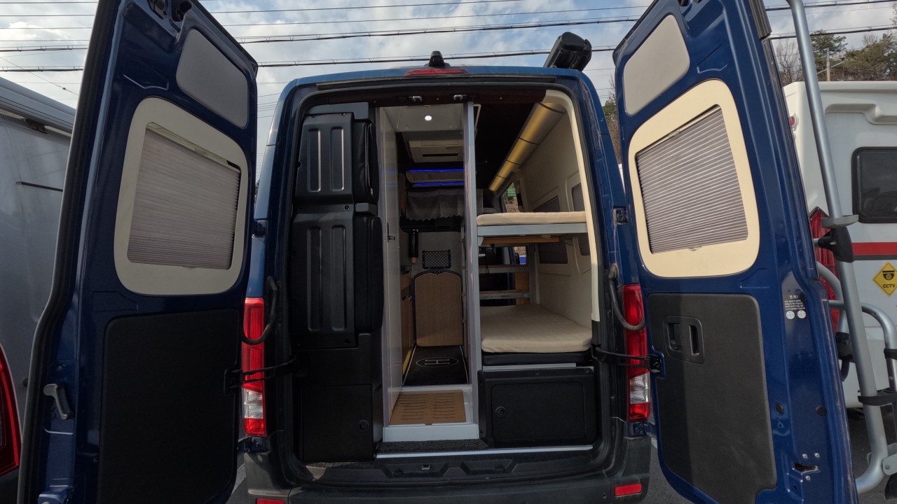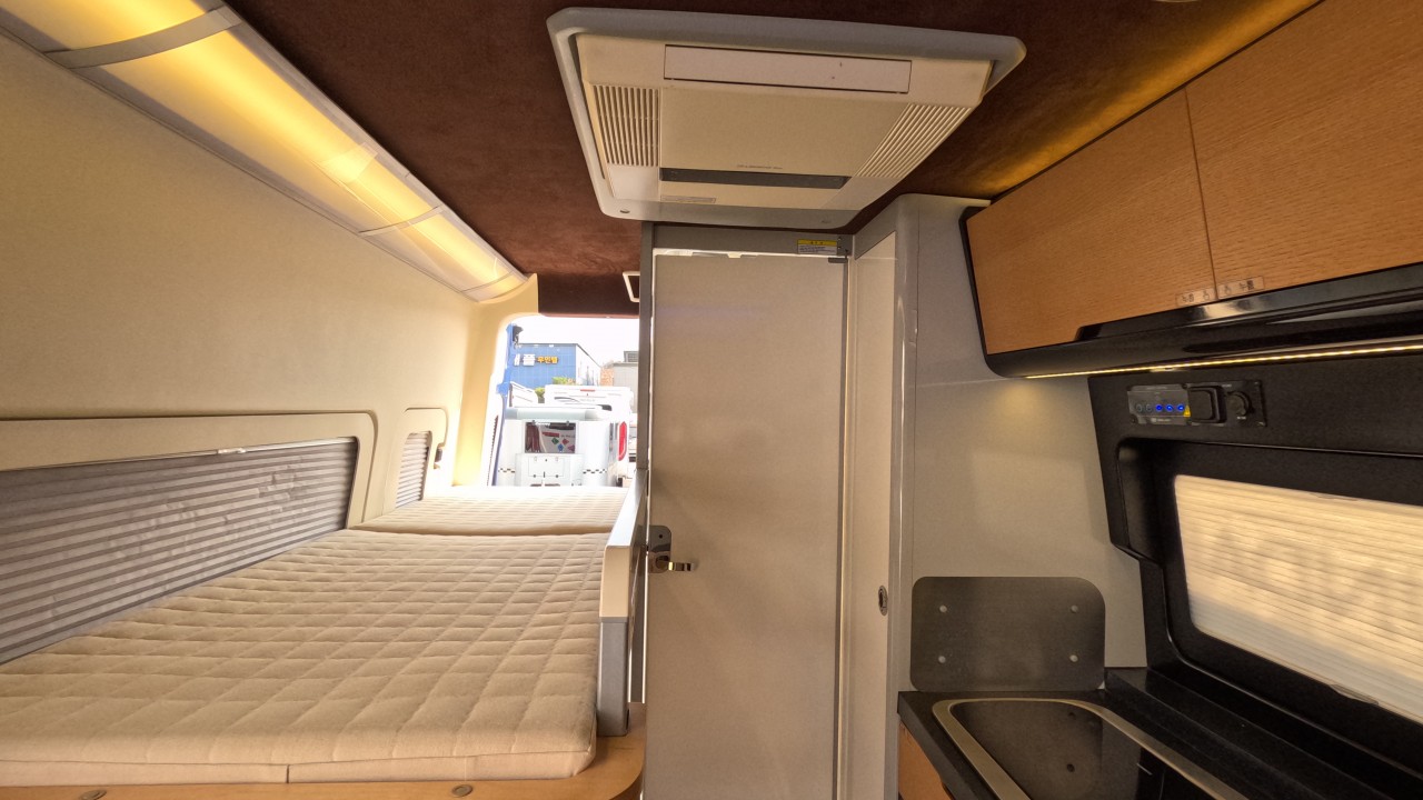 내부 : 천장형에어컨, 에바스D2, 냉장고, 2구가스렌지, 개수대, 청수76L, 오수95L, 욕실, 고정식변기, 환기팬, 2층침대, 1열/2열회전시트