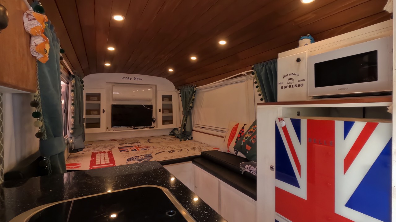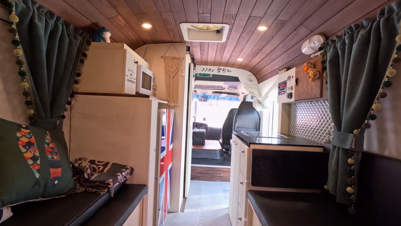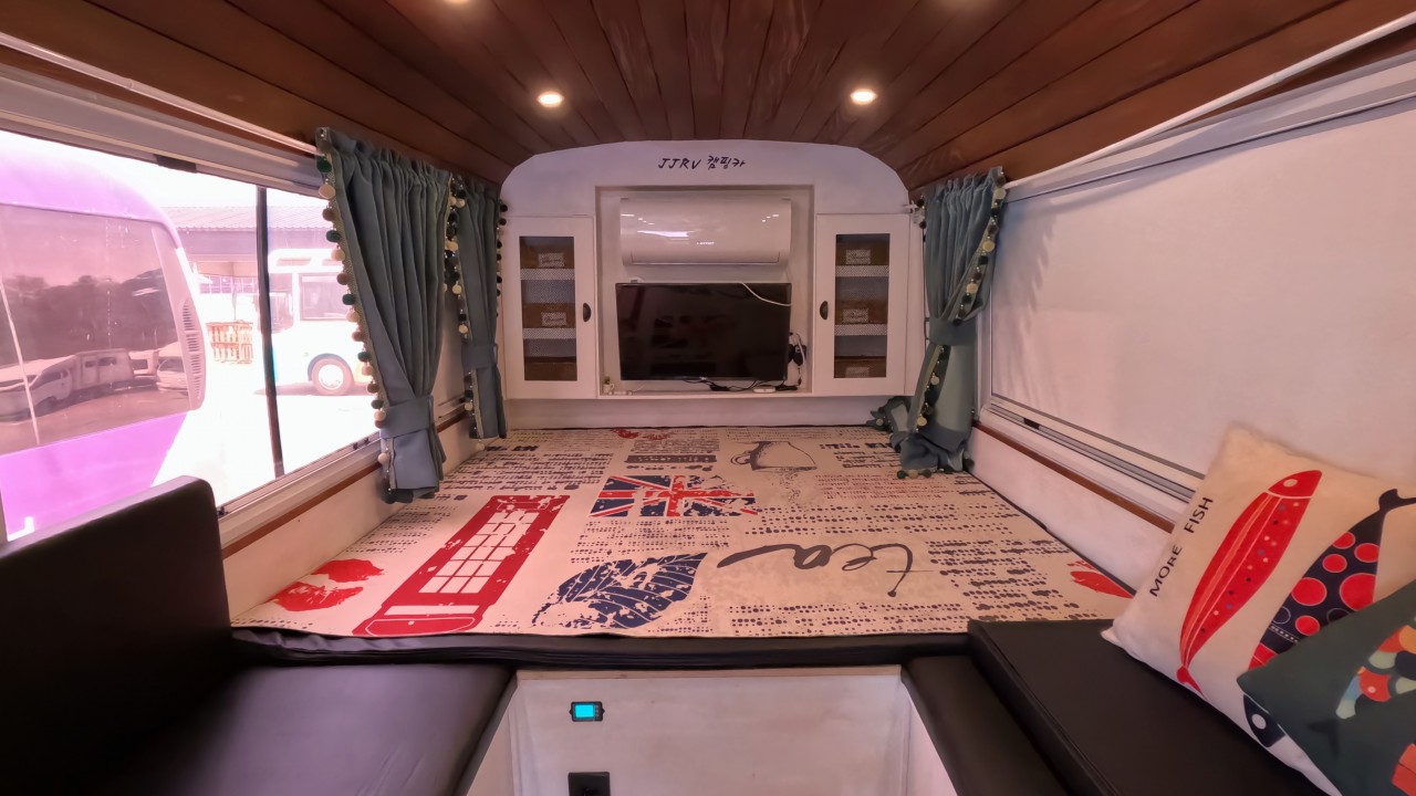 내부 : 무시동히터5K, 벽걸이에어컨, TV, 냉장고107L, 전자렌지, 개수대, 청수150L, 오수100L, 욕실, 맥스팬, 전기온수기