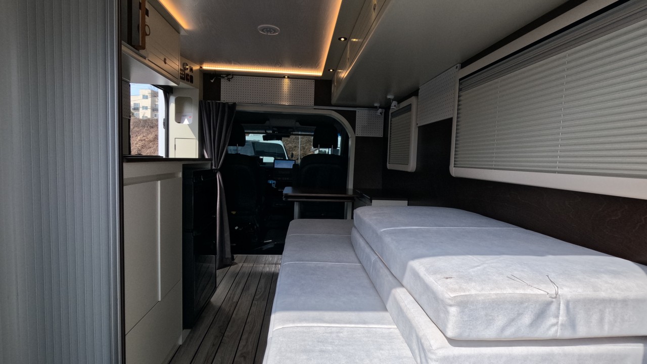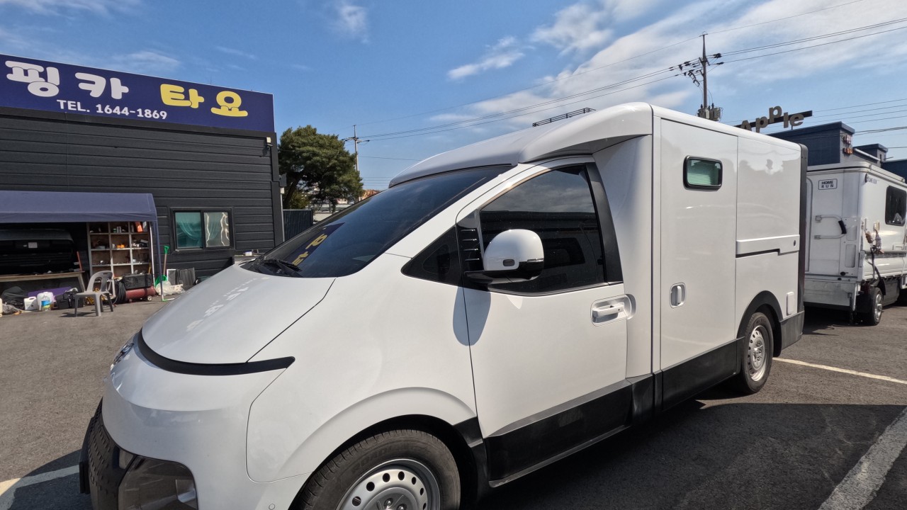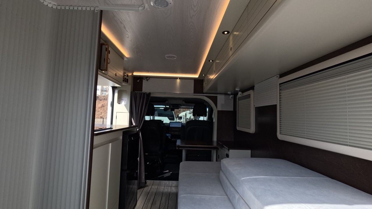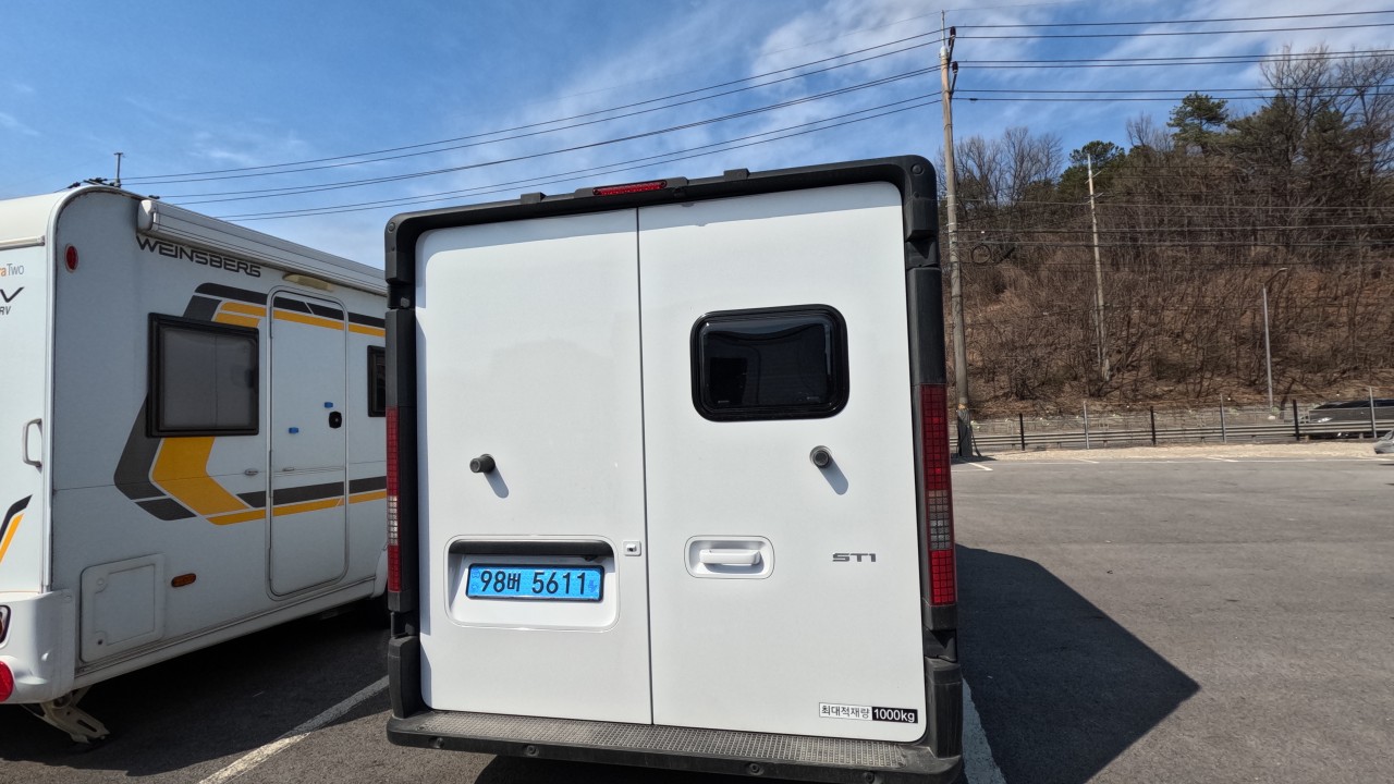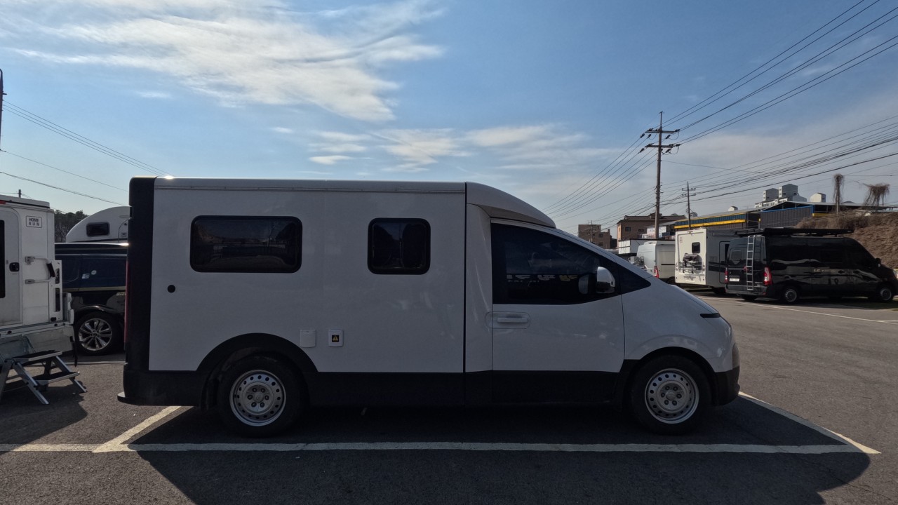 내부 : 전기차 차체에어컨, 에바스D2, 냉장고90L, 전자렌지, 개수대, 청수100L, 오수70L, 욕실, 온수, 보조의자 스위블
