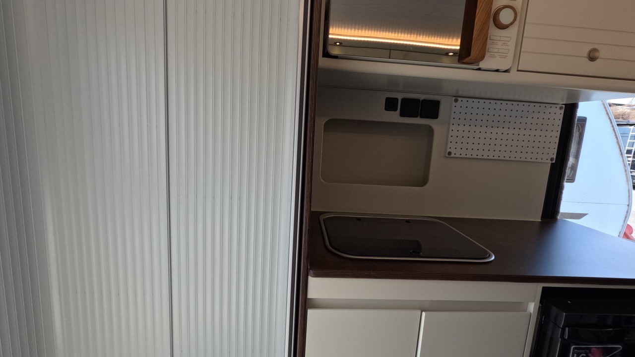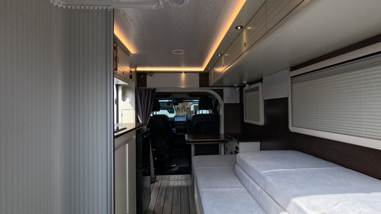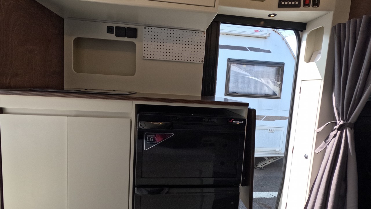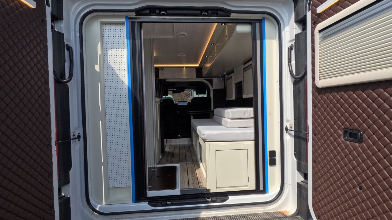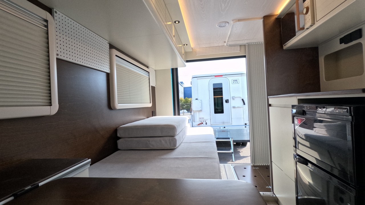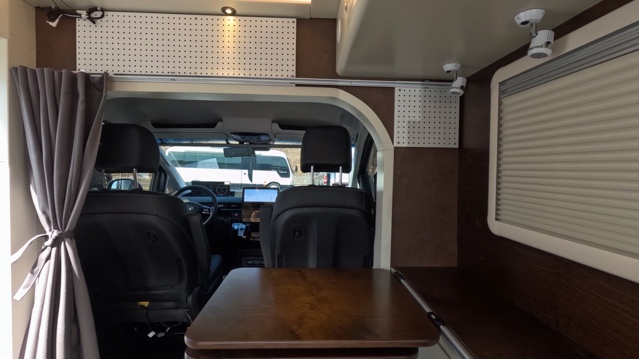 내부 : 전기차 차체에어컨, 에바스D2, 냉장고90L, 전자렌지, 개수대, 청수100L, 오수70L, 욕실, 온수, 보조의자 스위블