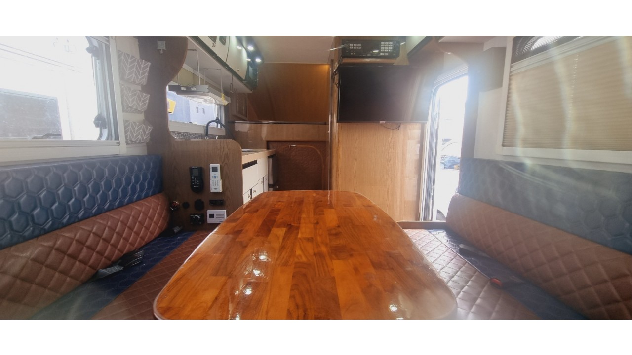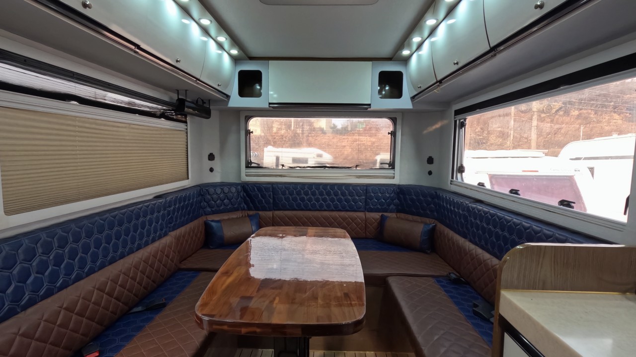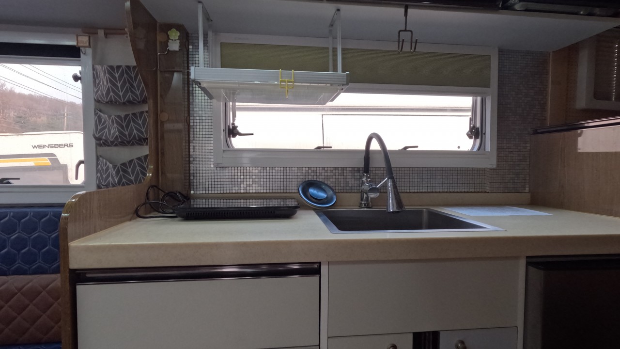 내부 : 벽걸이에어컨, 에바스D5 온수난방보일러, TV, 냉장고90L, 인덕션, 개수대, 청수150L, 오수80L, 욕실, 고정식변기