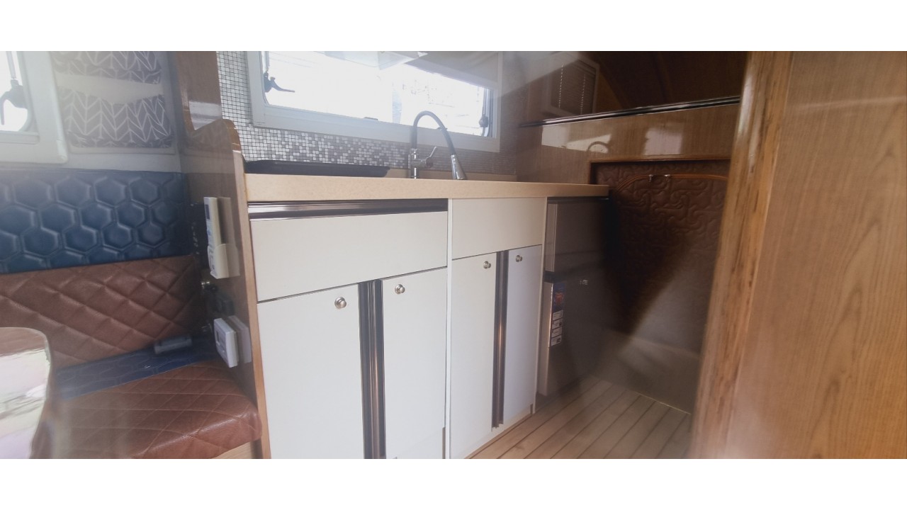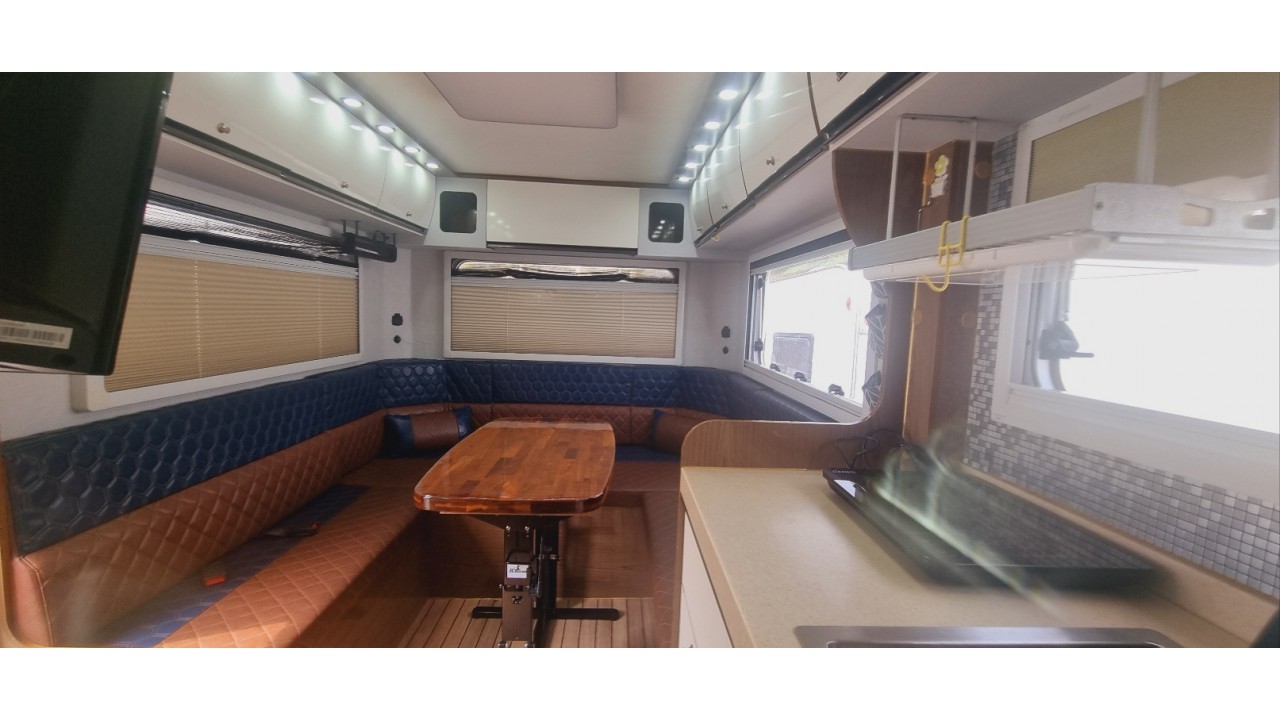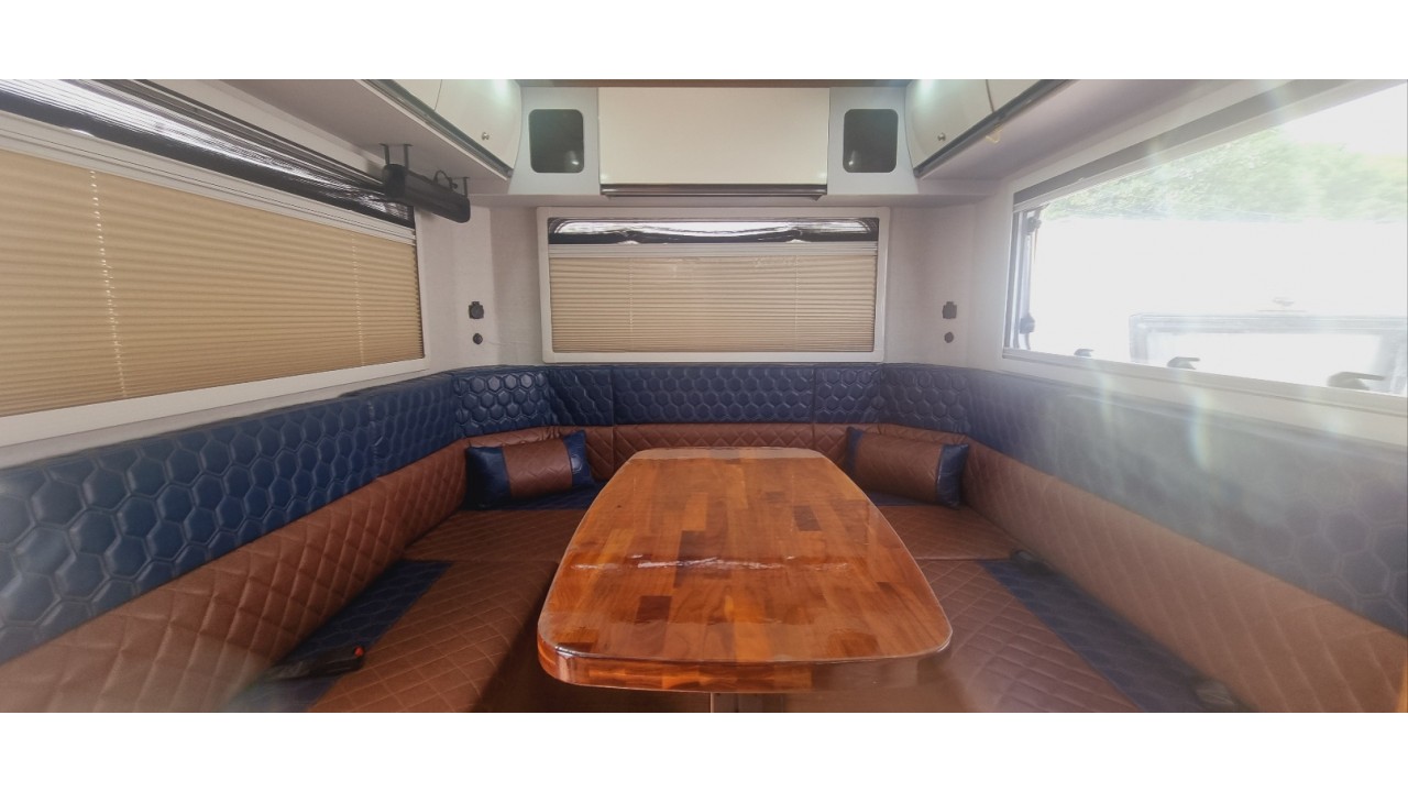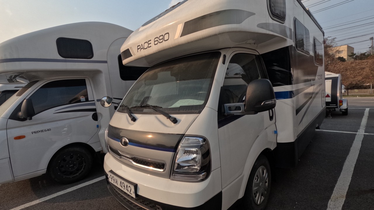 내부 : 벽걸이에어컨, 에바스D5 온수난방보일러, TV, 냉장고90L, 인덕션, 개수대, 청수150L, 오수80L, 욕실, 고정식변기
