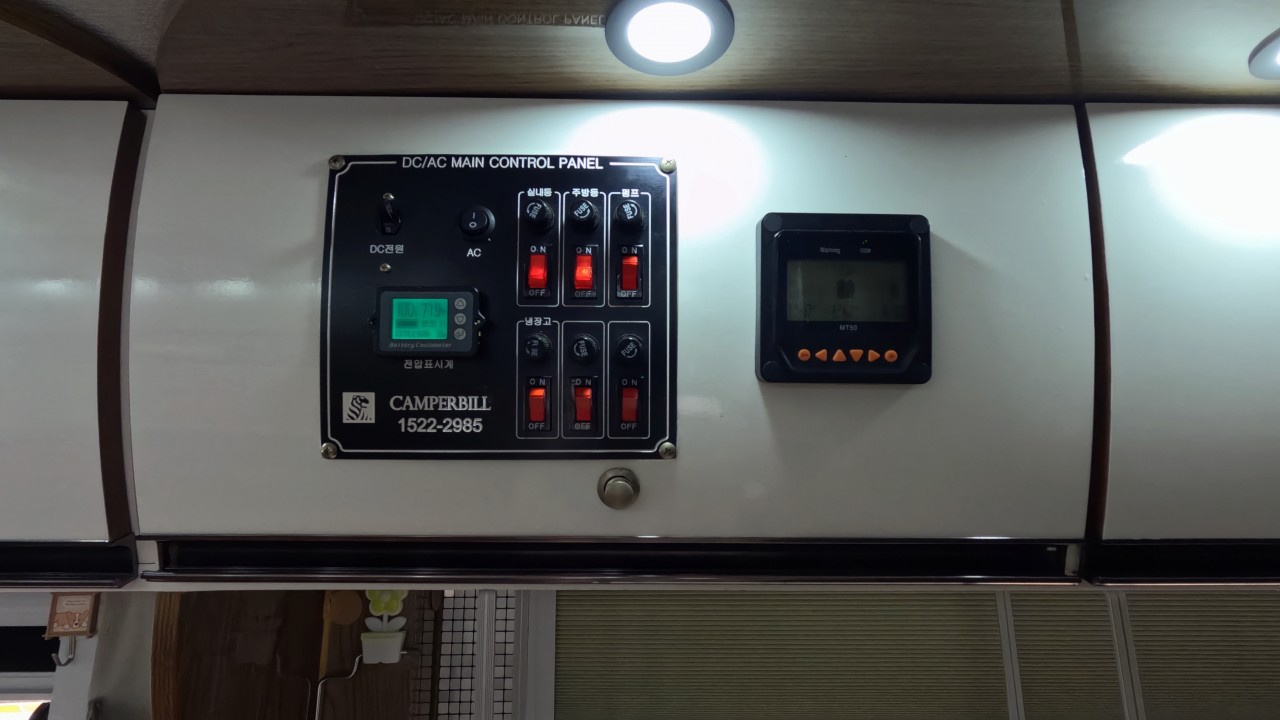 전기사양 : 인산철배터리720A, 한전충전30A, 주행충전180A, 태양광1080W, 인버터3K