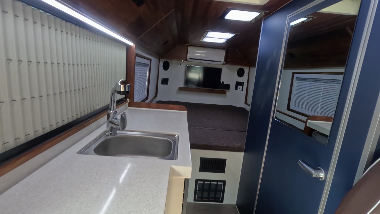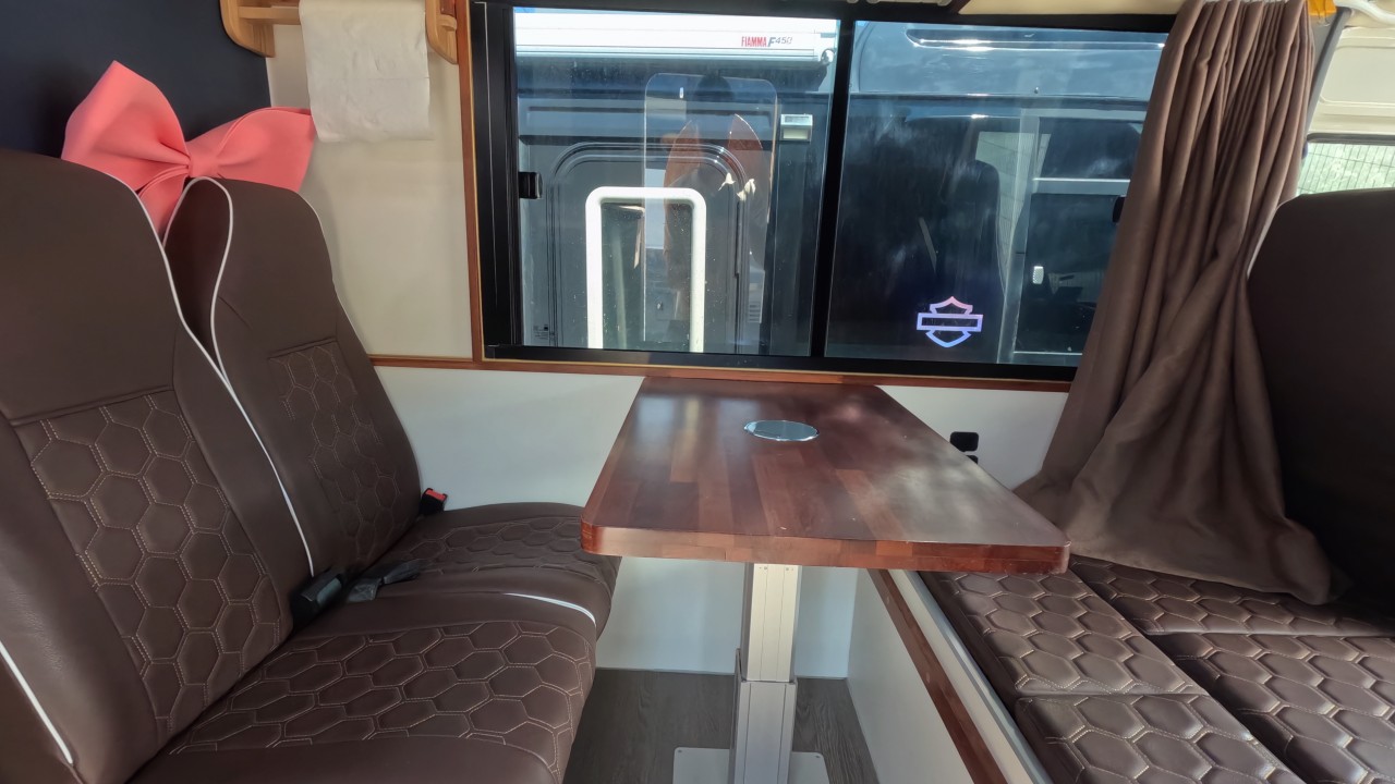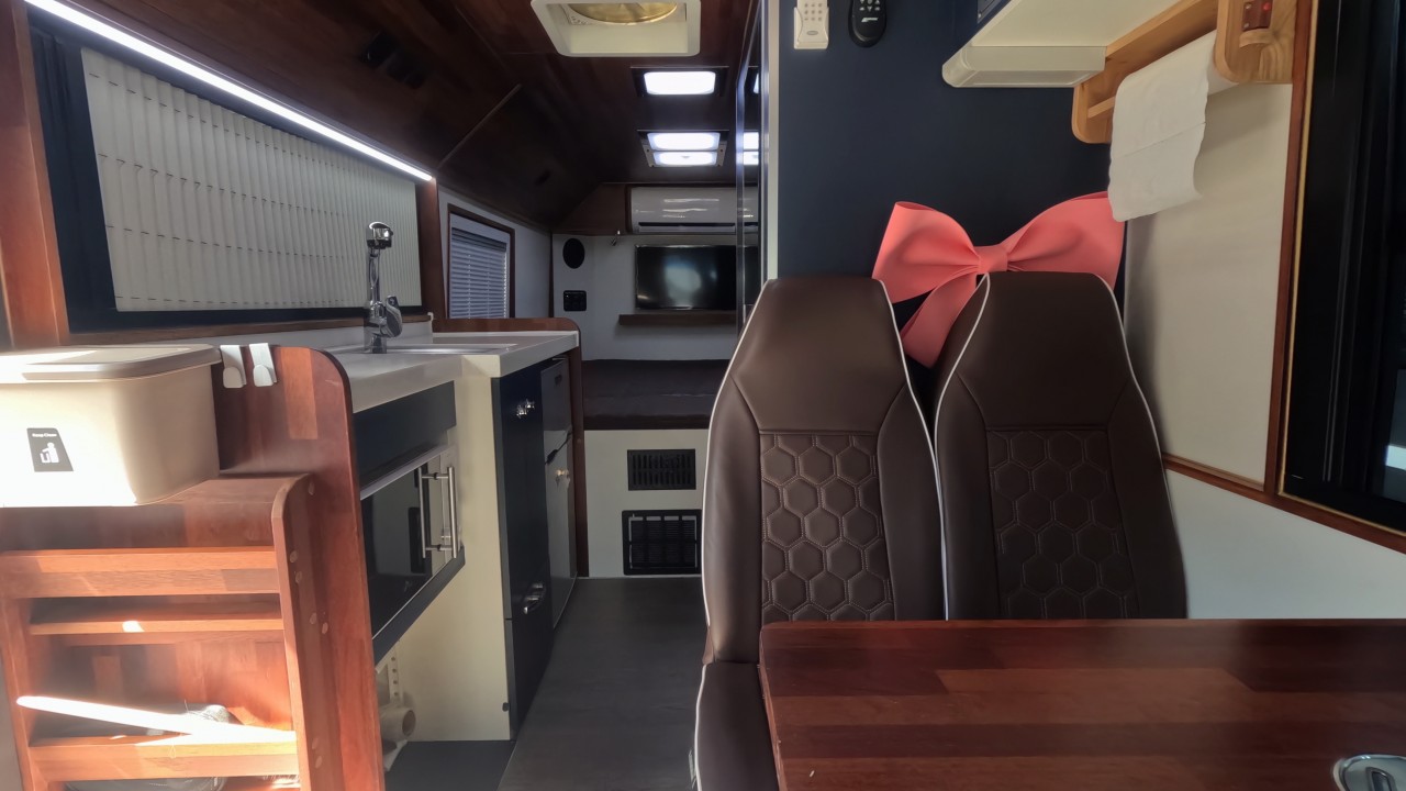 내부 : 벽걸이에어컨, 에바스D5, 온수난방보일러, TV2대, 냉장고, 전자렌지, 개수대, 청수300L, 오수80L 욕실, 이동식변기, 맥스팬, 자동퇴수시스템