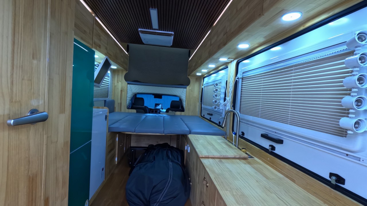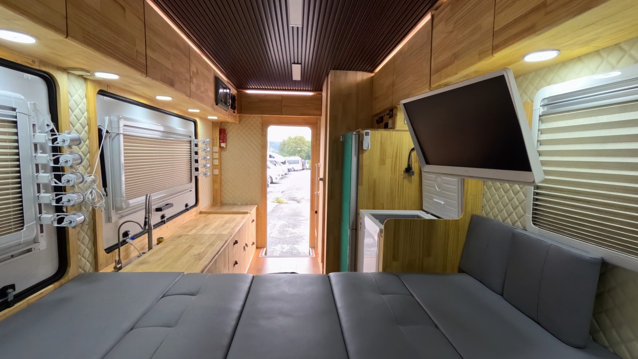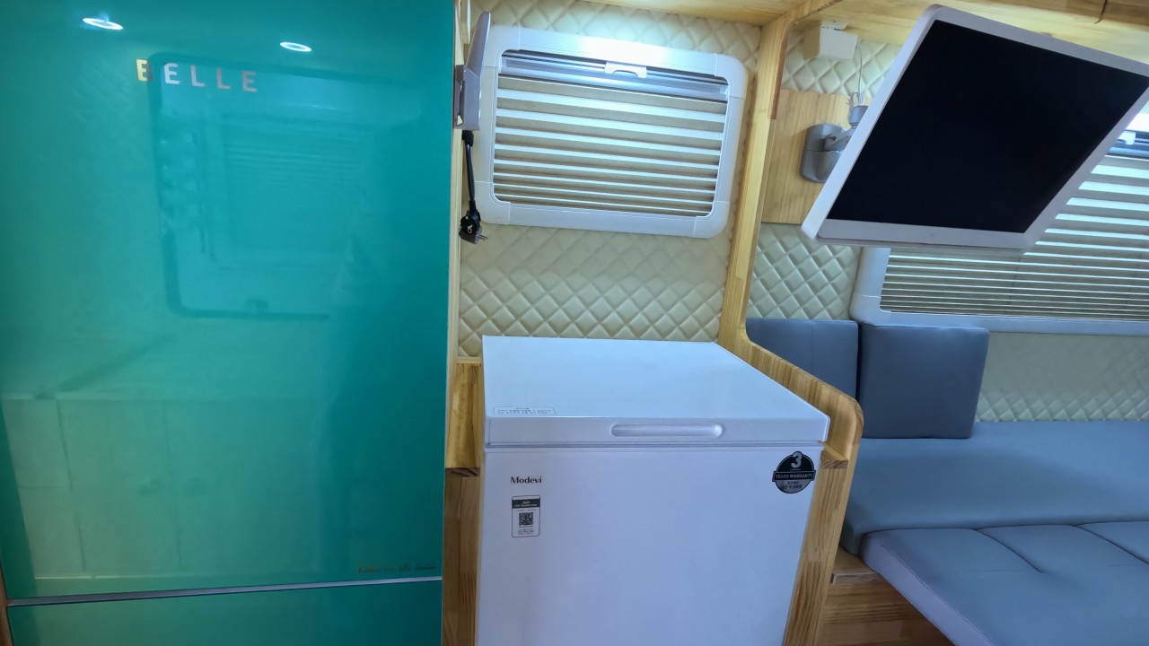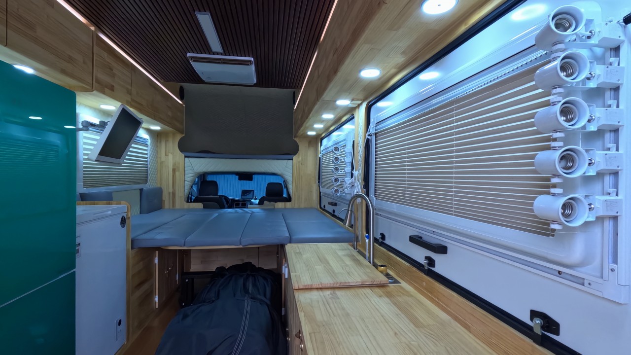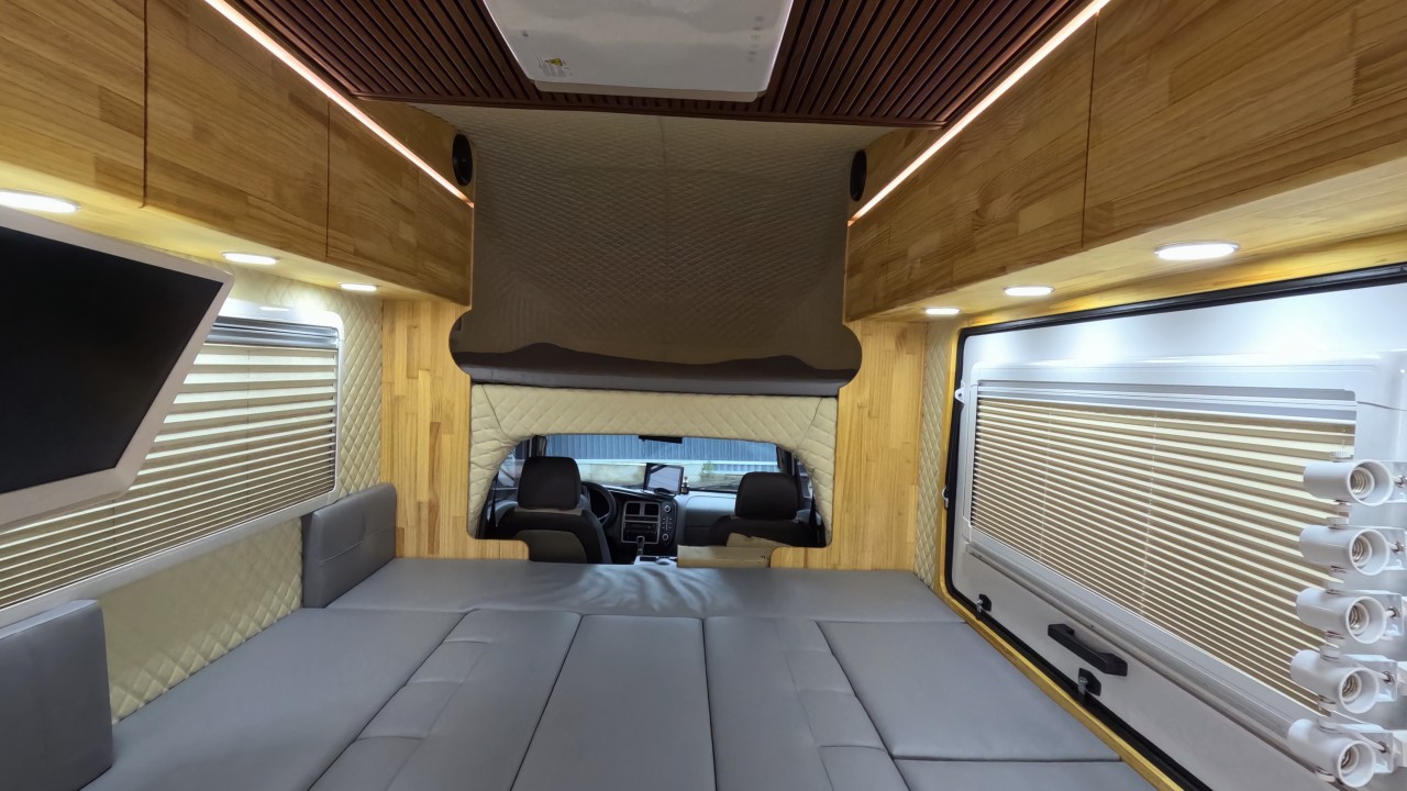 내부 : 천장형에어컨, 베바스토EVO5, 온수, 바닥난방, TV, 전자렌지, 냉장고, 냉동고, 청수150L, 오수120L, 욕실