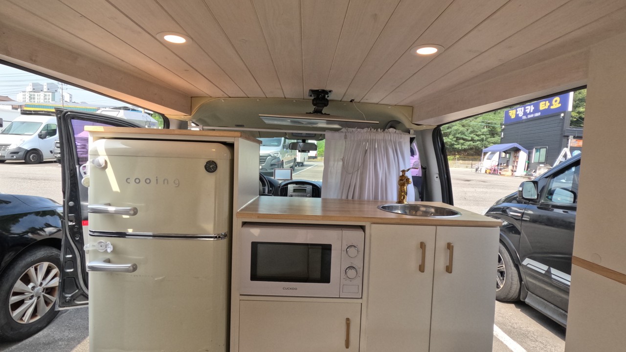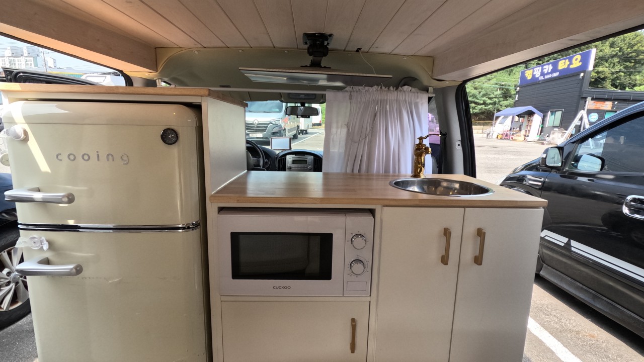 내부 : 무시동히터2K, TV, 냉장고80L, 개수대, 청수20L, 오수20L, 전자렌지, 측면/후면 암막커튼
