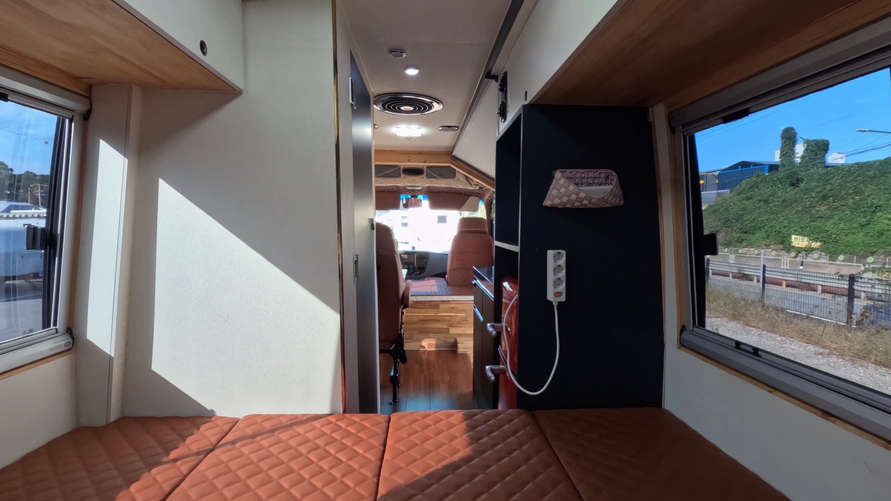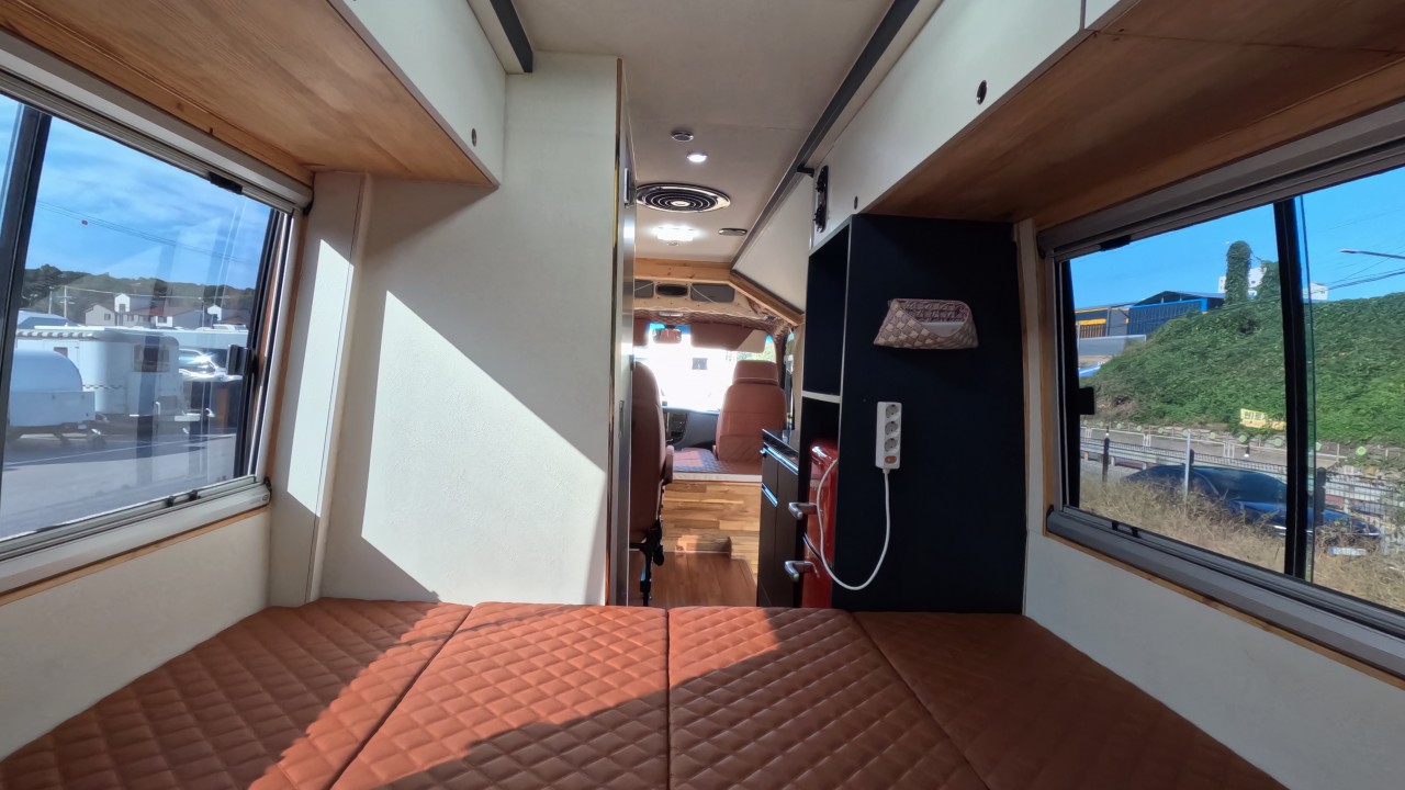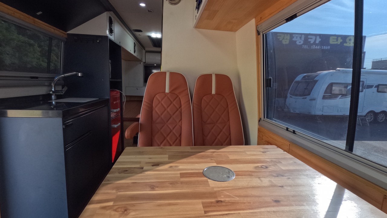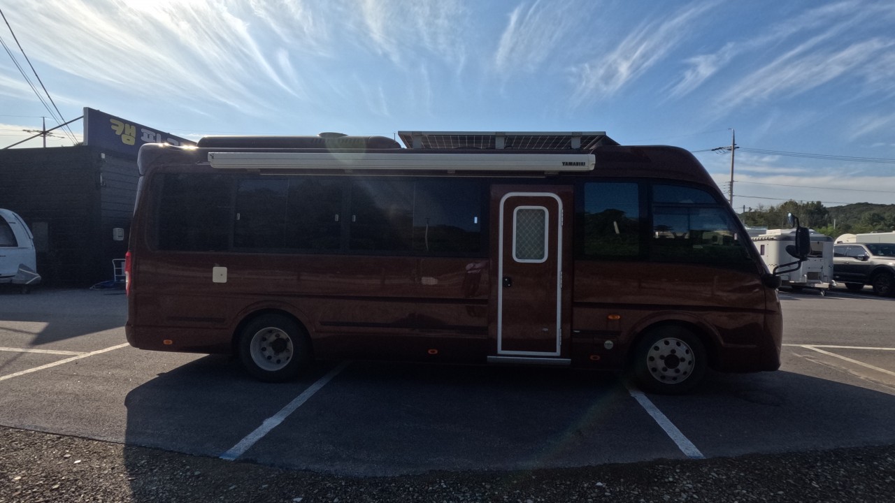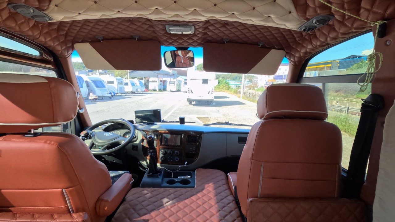 내부 : 벽걸이에어컨, 에바스D5, 온수, TV, 냉장고, 전자렌지, 개수대, 청수200L, 오수75L, 욕실