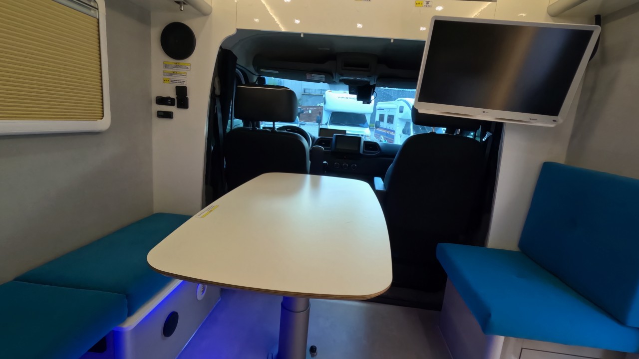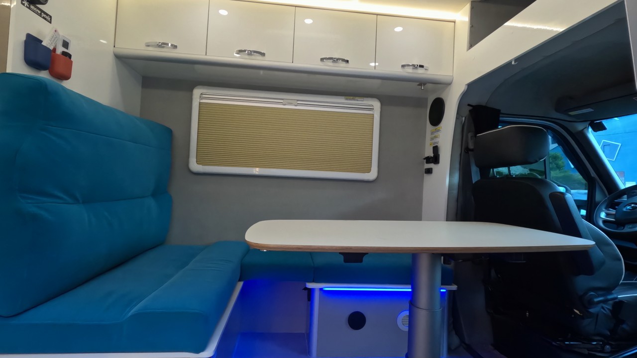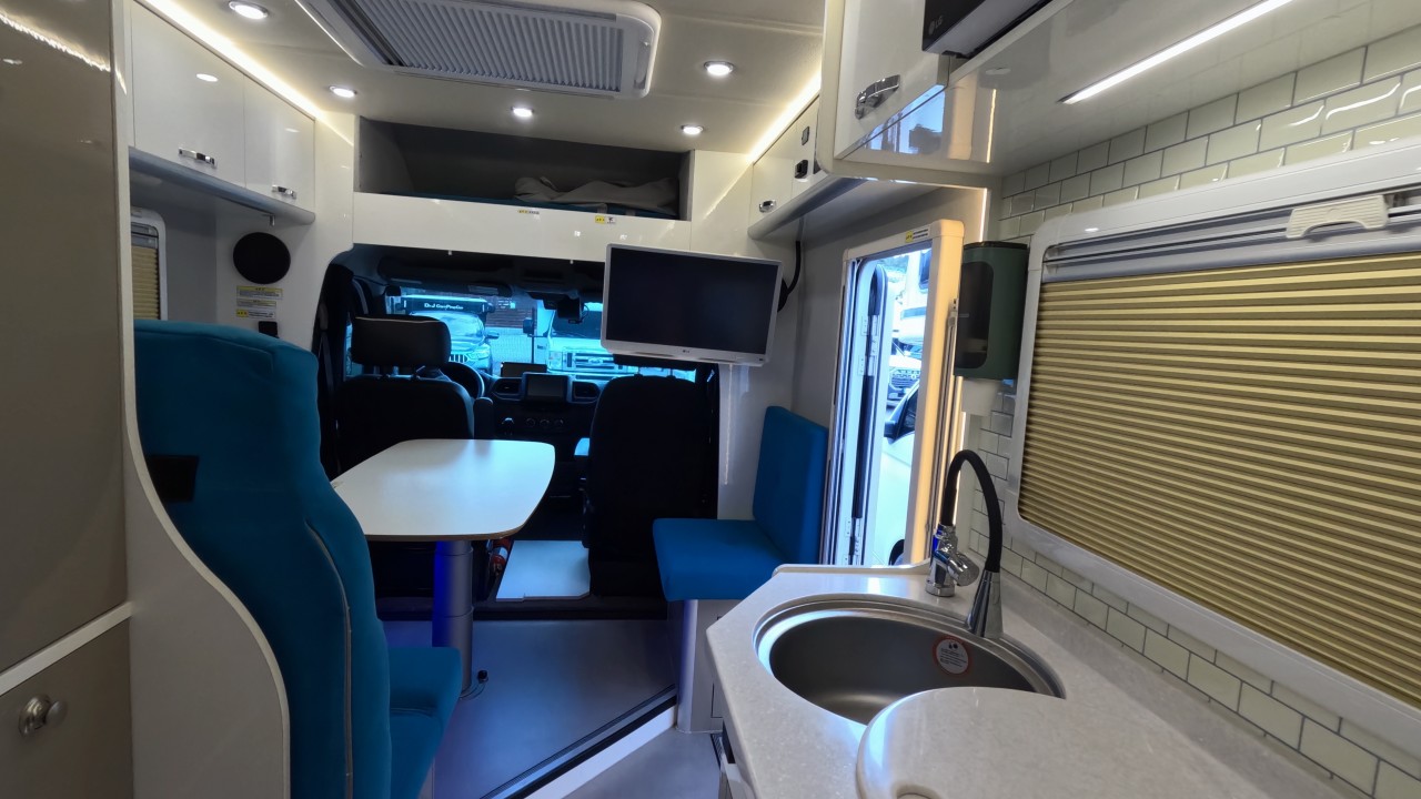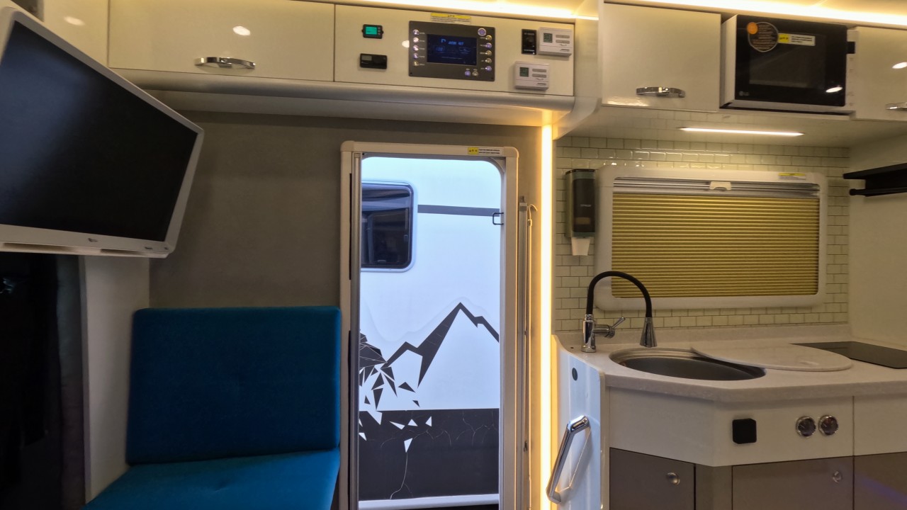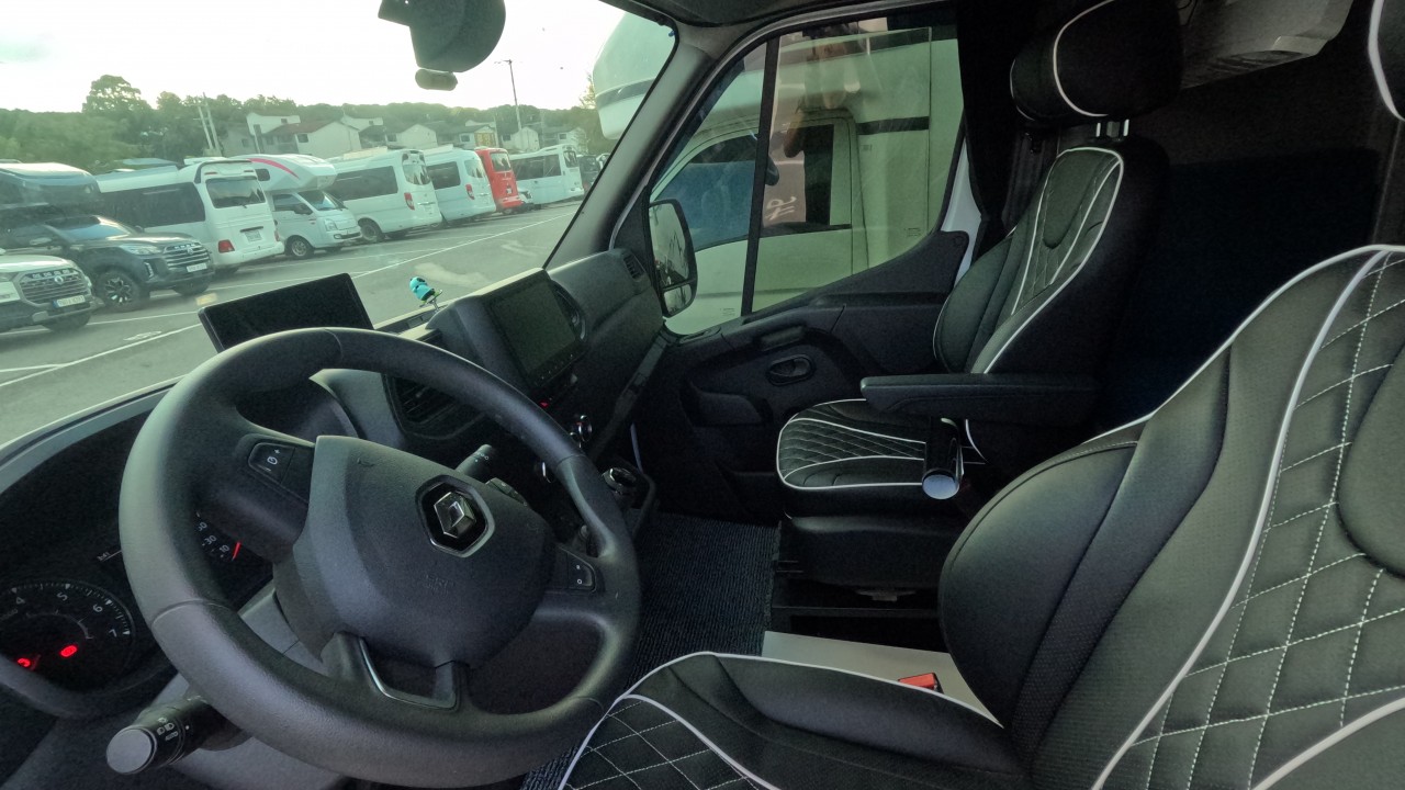 내부 : 벽걸이에어컨, 에바스D2, 에바스D5, 냉장고150L, 인덕션, 개수대, 청수150L, 오수50L, 욕실, 고정식변기, 맥스팬, TV