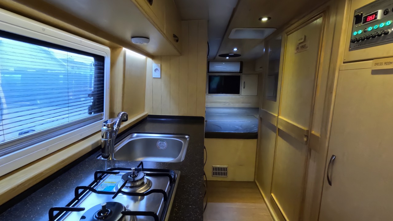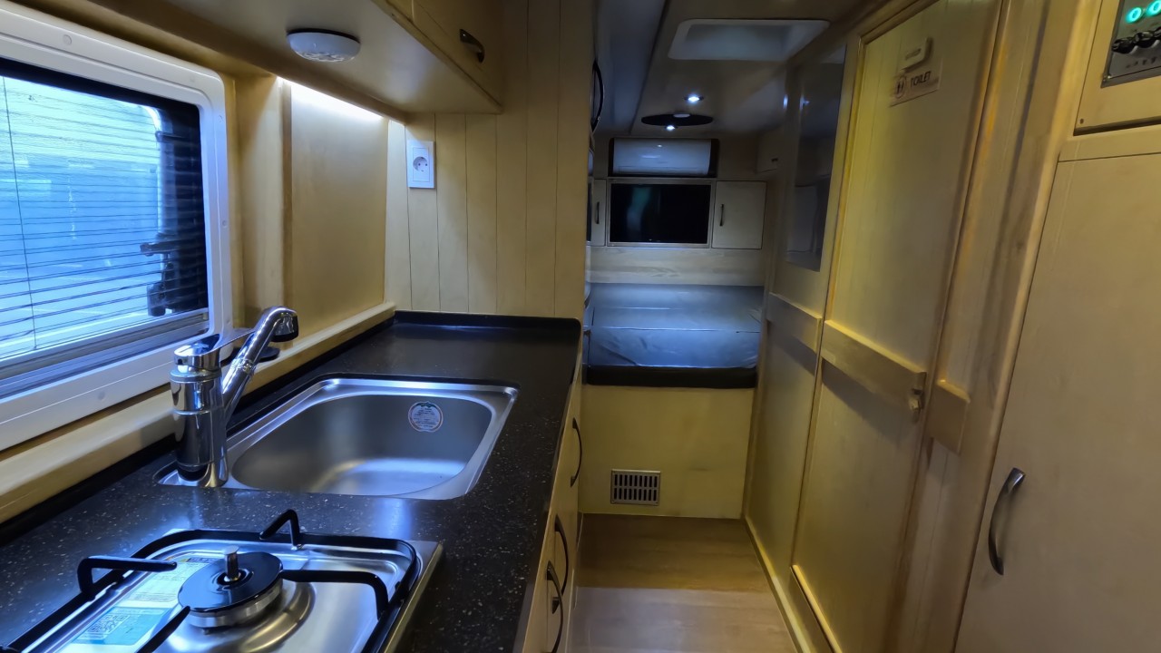 내부 : 에바스D3, TV, 냉장고130L, 가스렌지, 전자렌지, 개수대, 청수300, 오수150L, 욕실, 이동식변기, 미국식온수기, 맥스팬