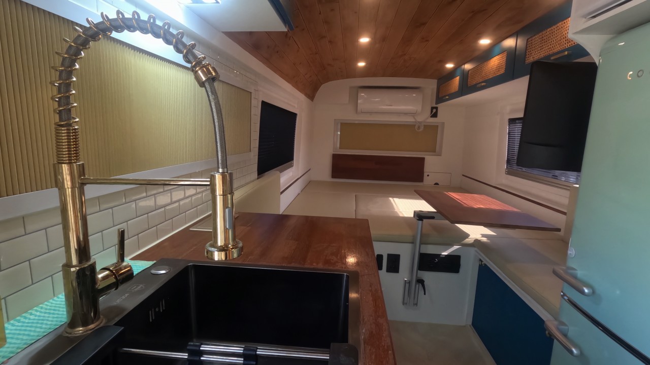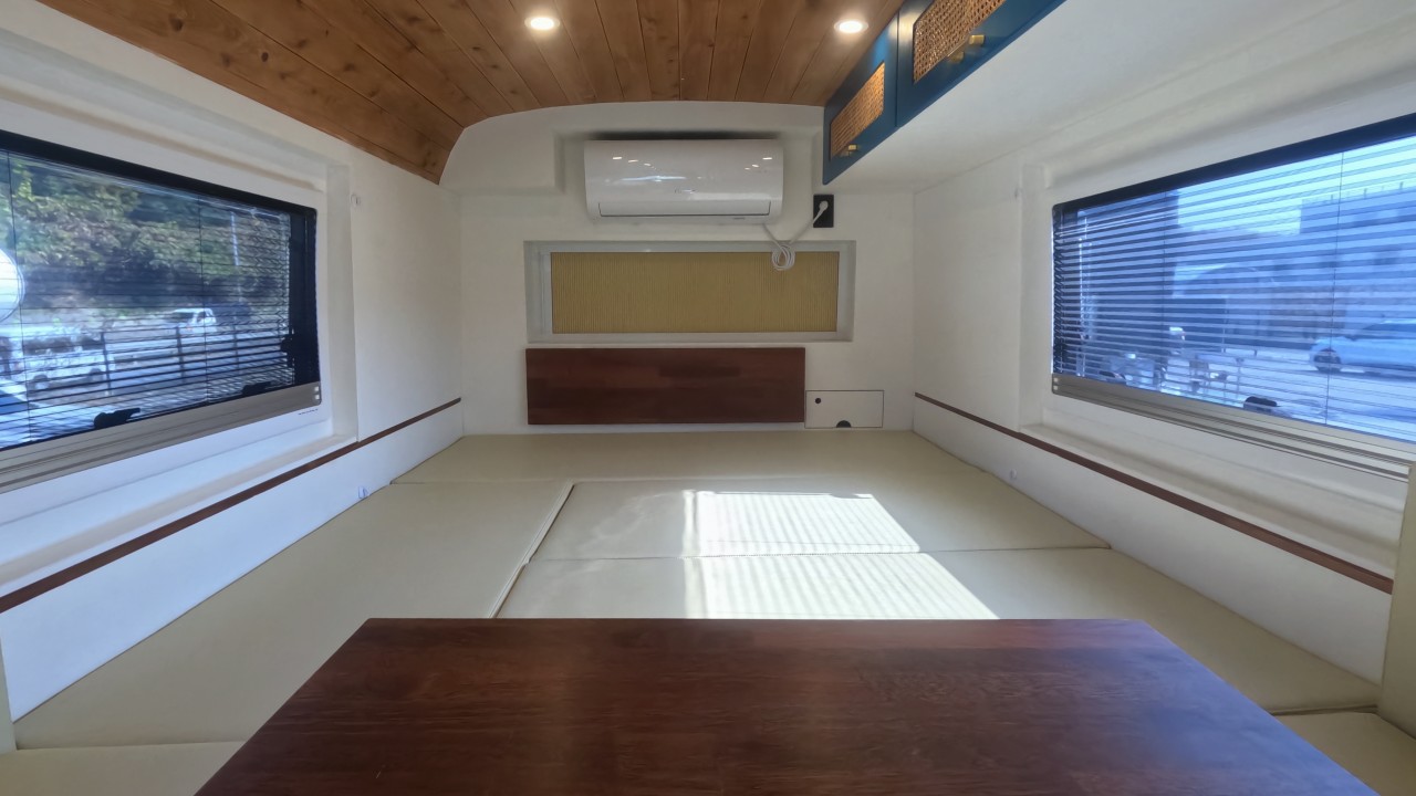 내부 : 에바스D5, 무시동히터, 온수, 맥스팬, 벽걸이에어컨, 개수대, TV, 냉장고150L, 전자렌지, 욕실, 고정식변기, 청수250L, 오수100L, 맥스팬