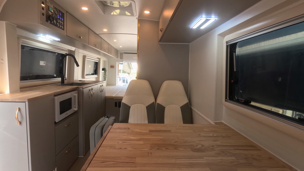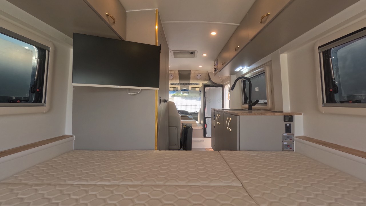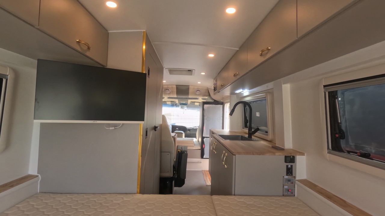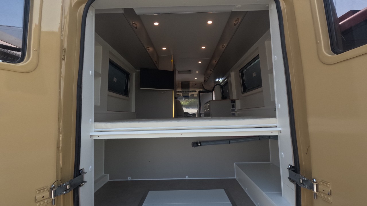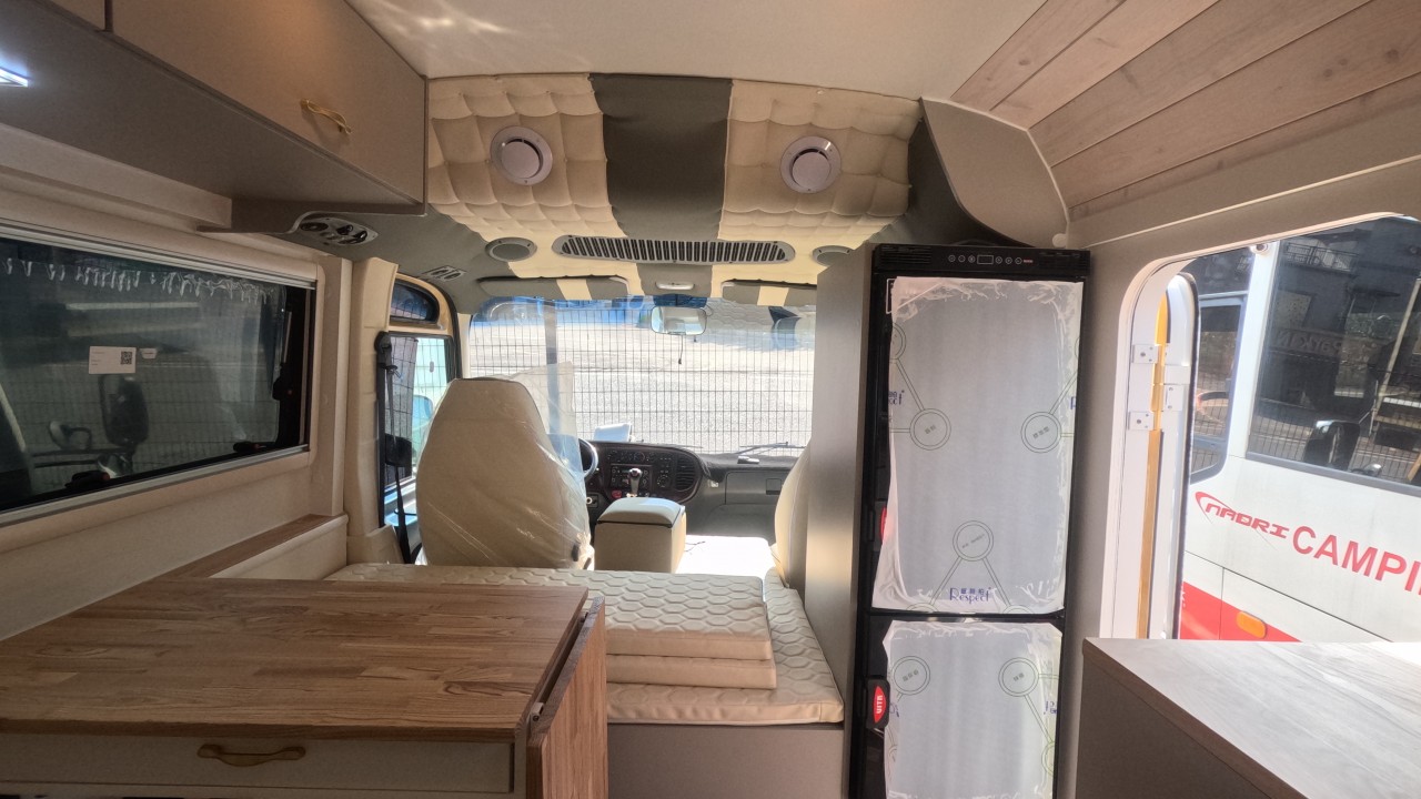 내부 : 베바스토EVO5, 온수, 온수매트, 맥스팬, 벽걸이에어컨, 개수대, 냉장고150L, 전자렌지, TV, 욕실, 고정식변기, 청수250L, 오수150L