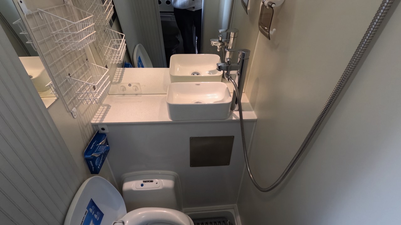 내부 : 벽걸이에어컨, 에바스D5, 온수, 온수매트, TV, 냉장고, 전자렌지, 개수대, 청수150L, 오수80L, 욕실, 고정식변기, 맥스팬, 오디오, 루프팝업