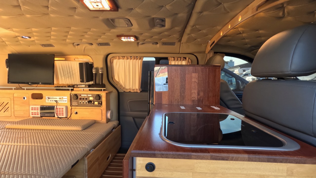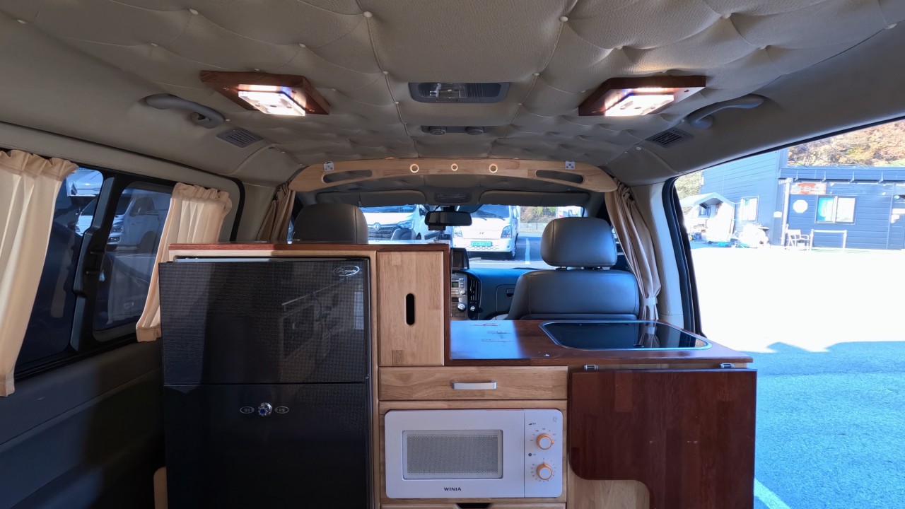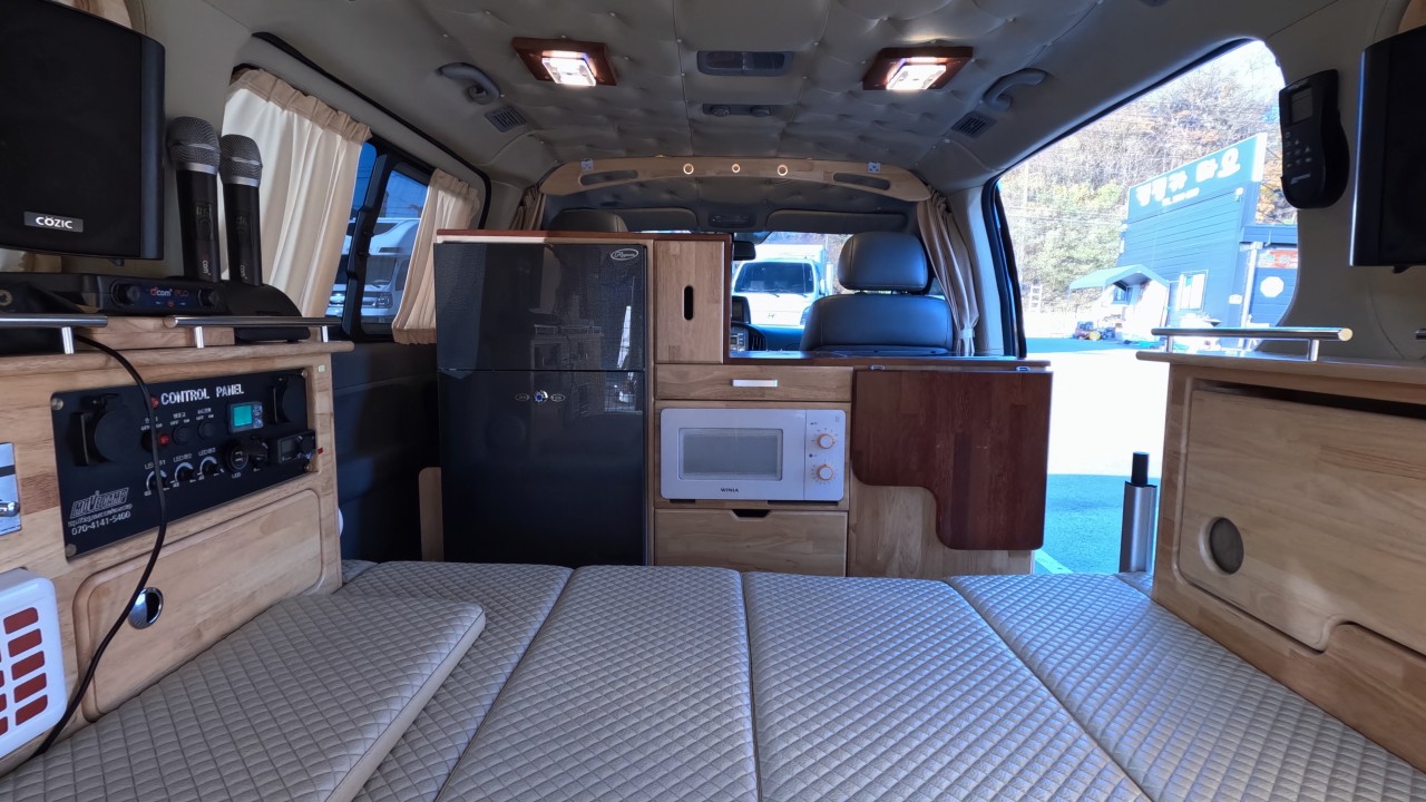 내부 : 에바스D2, TV, 냉장고90L, 전자렌지, 개수대, 청수20L, 오수20L, 이동식변기, 걸이식테이블, 측면암막커튼, 후면모기장, 맥스팬, 천장엠보싱, 노래방기기