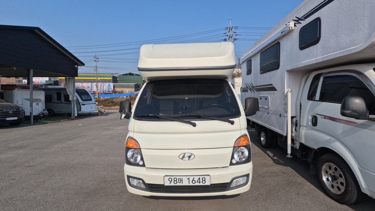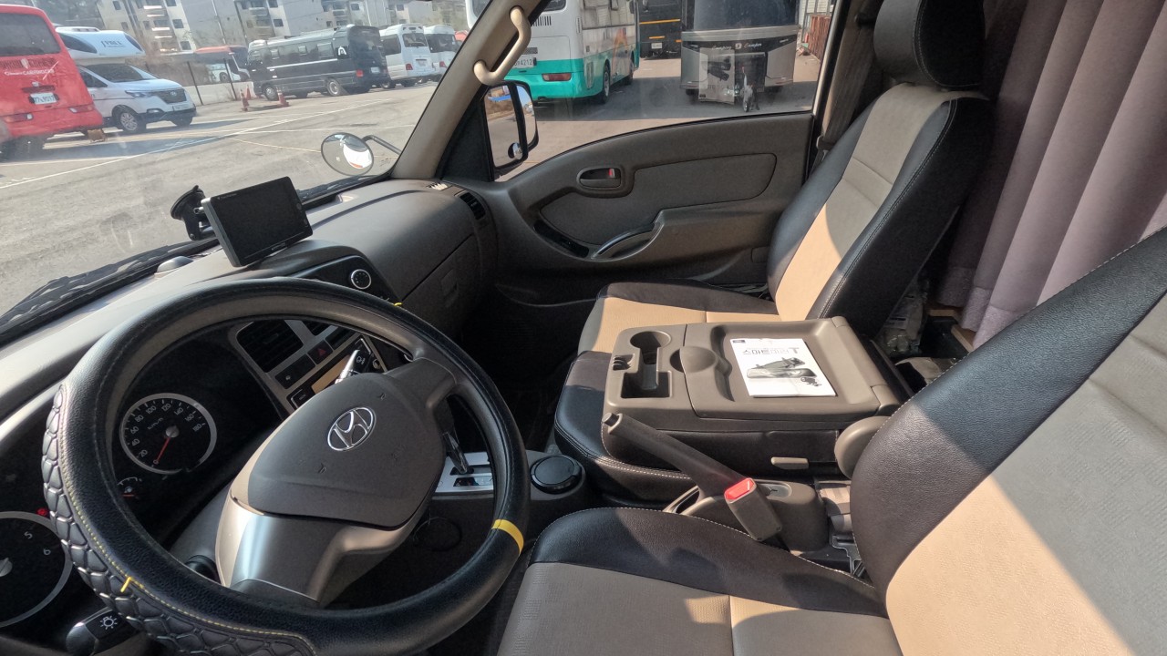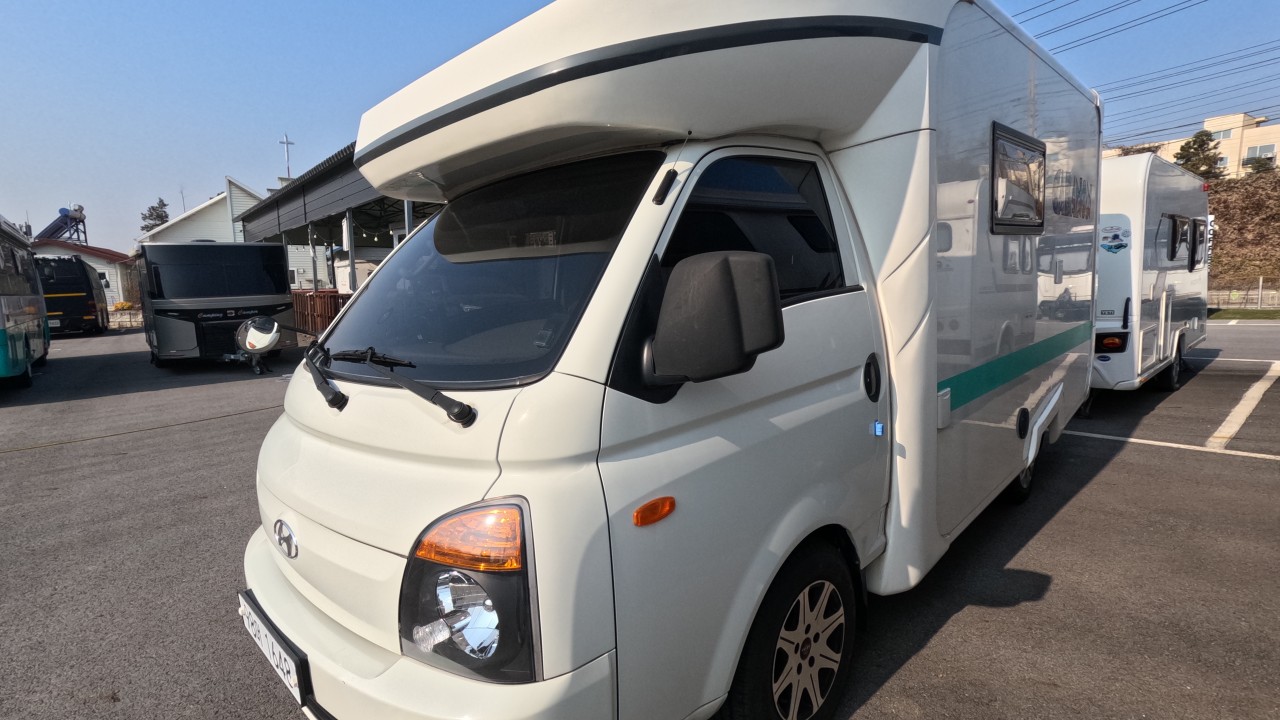 내부 : 벽걸이에어컨, 에바스D2, 온수, 냉장고90L, 전자렌지, 개수대, 청수150L, 오수80L, 욕실