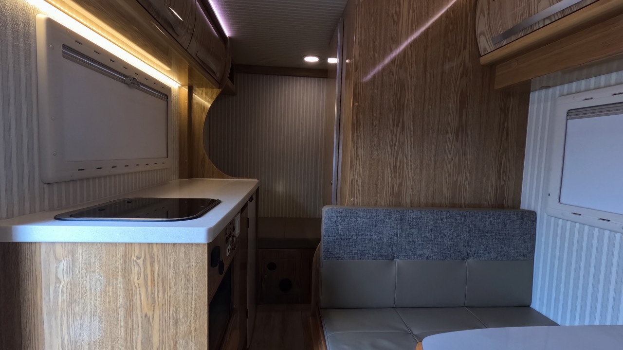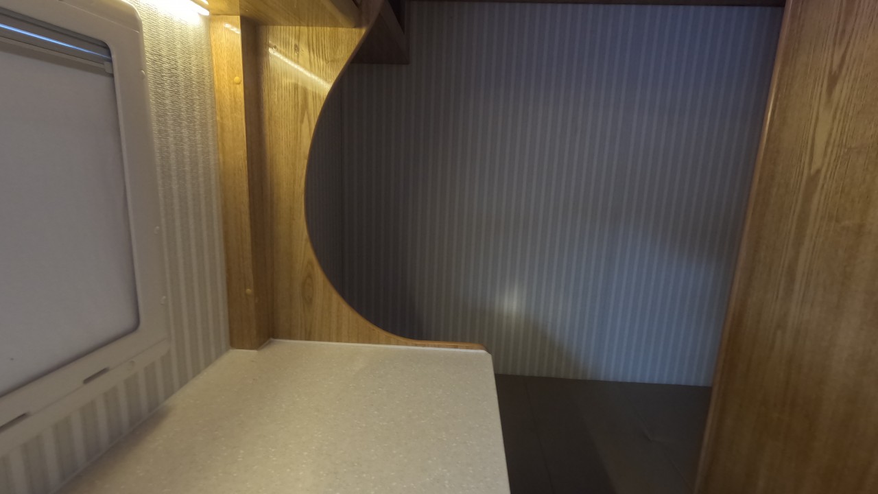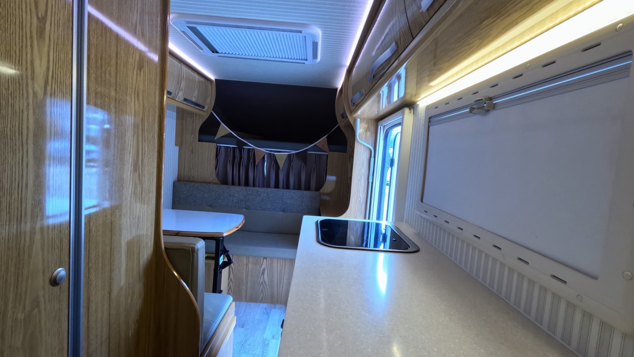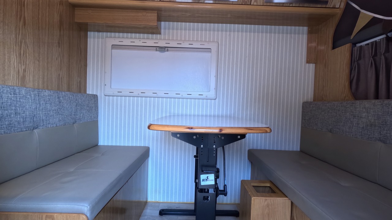내부 : 벽걸이에어컨, 에바스D2, 온수, 냉장고90L, 전자렌지, 개수대, 청수150L, 오수80L, 욕실