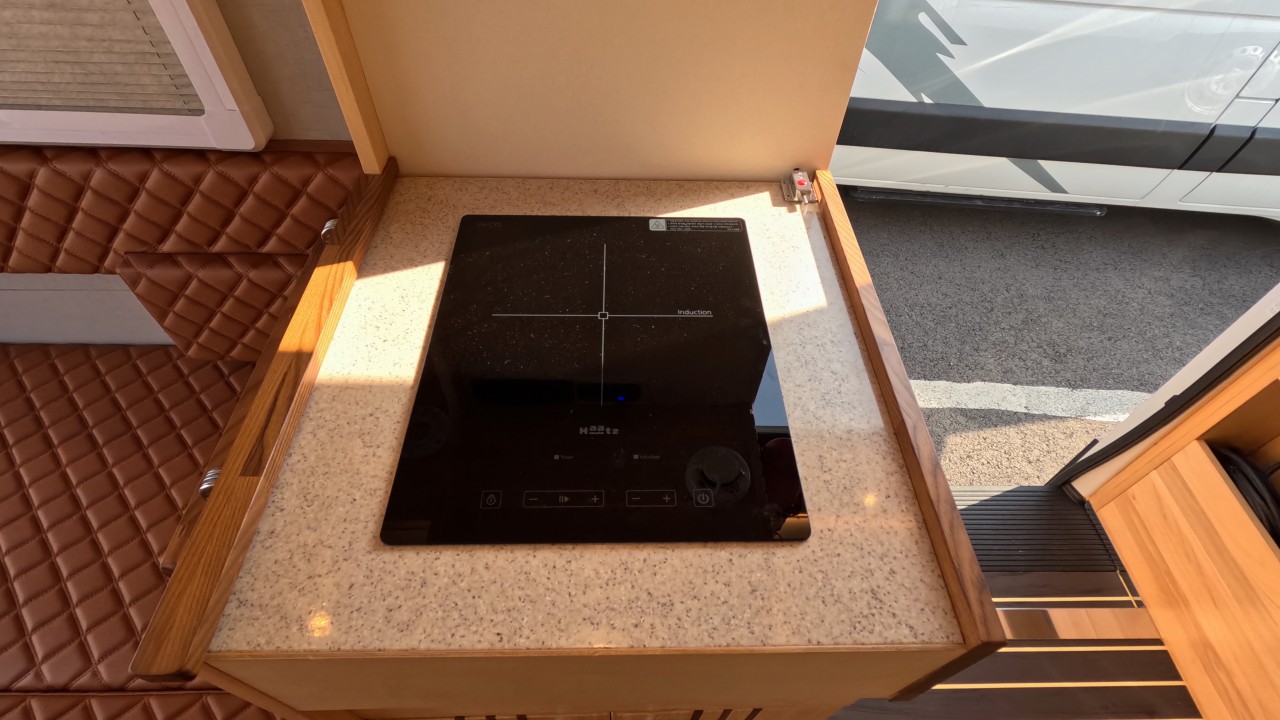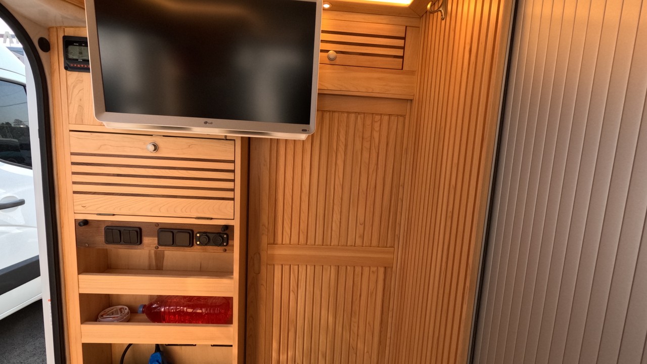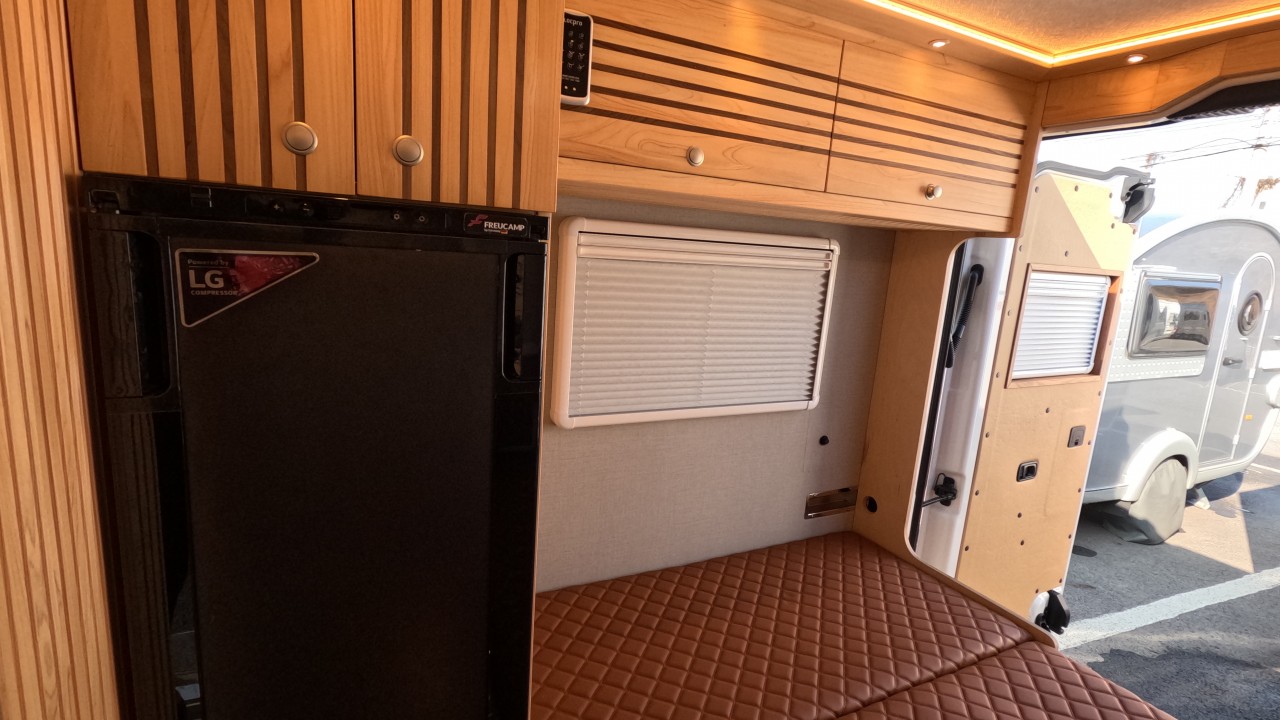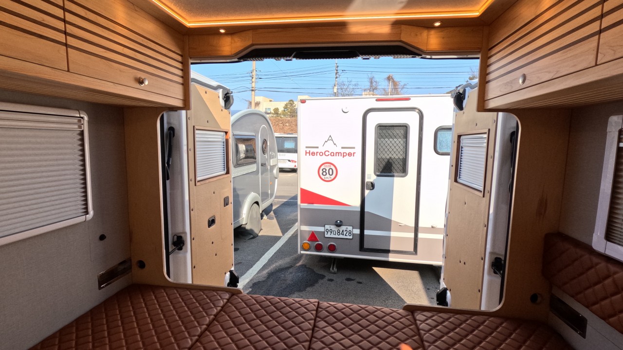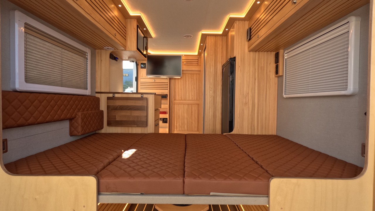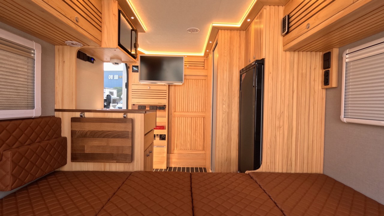 내부 : 전기차, 차체에어컨, 에바스D2, 에바스D5, TV, 냉장고130L, 전자렌지, 인덕션, 개수대, 청수150L, 오수100L, 욕실, 고정식변기, 전기필름(바닥난방)