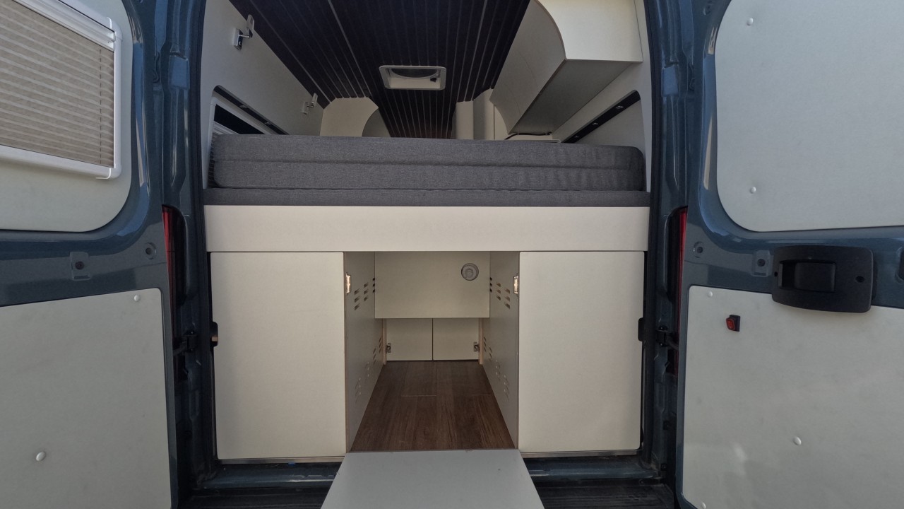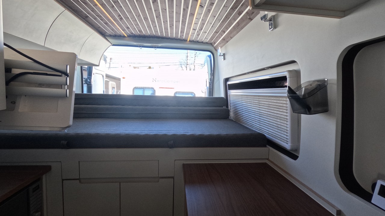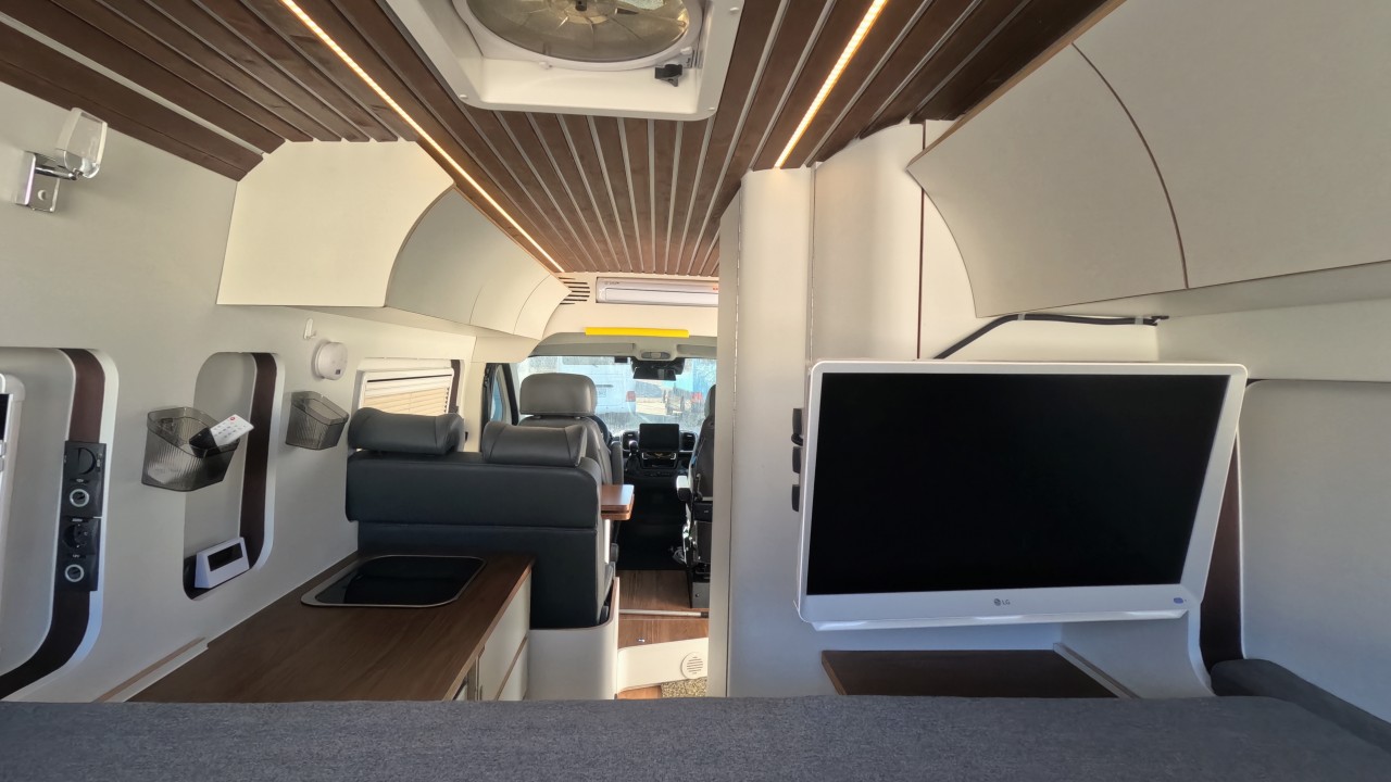 내부 : 바닥형에어컨, 에바스D2, 온수, TV, 냉장고110L, 전자렌지, 개수대, 청수120L, 오수90L, 욕실, 고정식변기, 전면커튼,