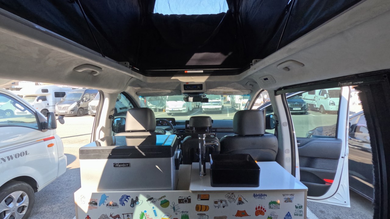 내부 : 무시동히터, 냉장고, 전자렌지, 개수대, 청수10L, 오수10L, 측면/후면 모기장, 전동팝업, 가림막텐트