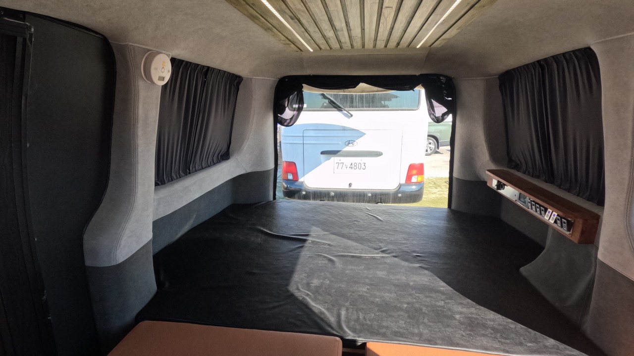 내부 : 무시동히터, 천장형TV, 냉장고, 전자렌지, 전면커튼, 개수대, 청수20L, 오수20L, 레일식수납함, 리무진시트, 암막커튼, 측면후면모기장