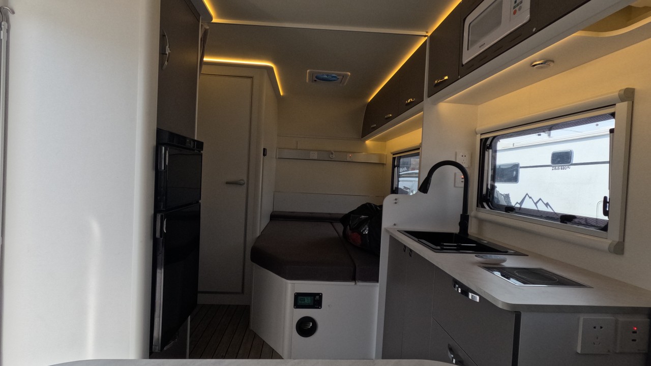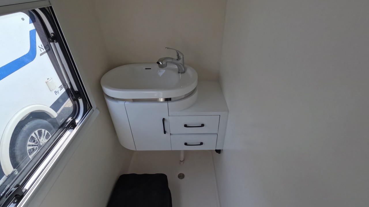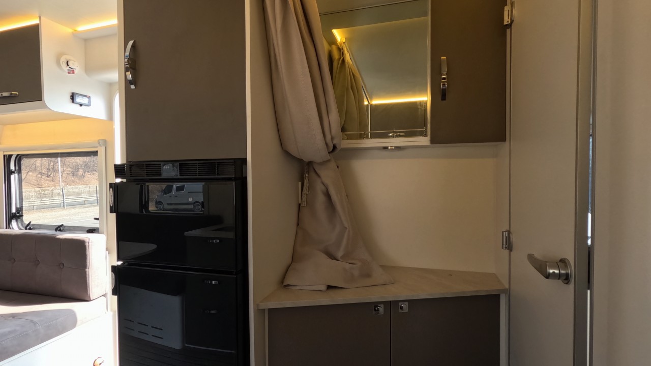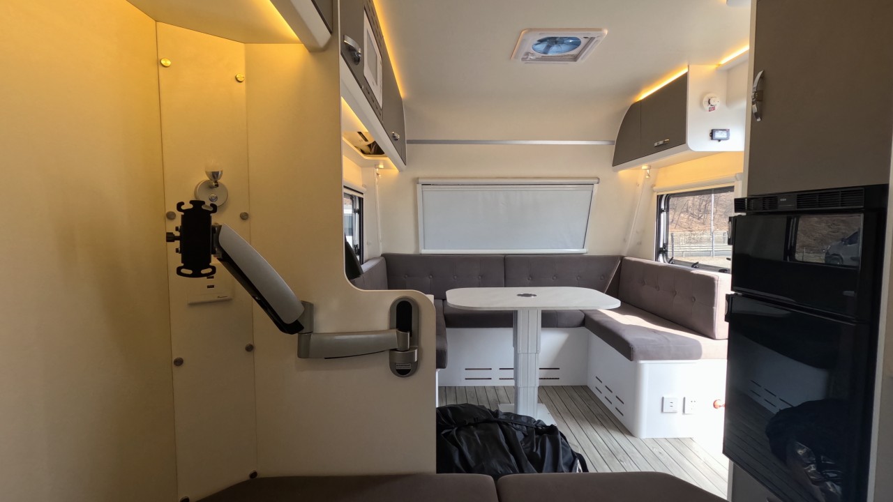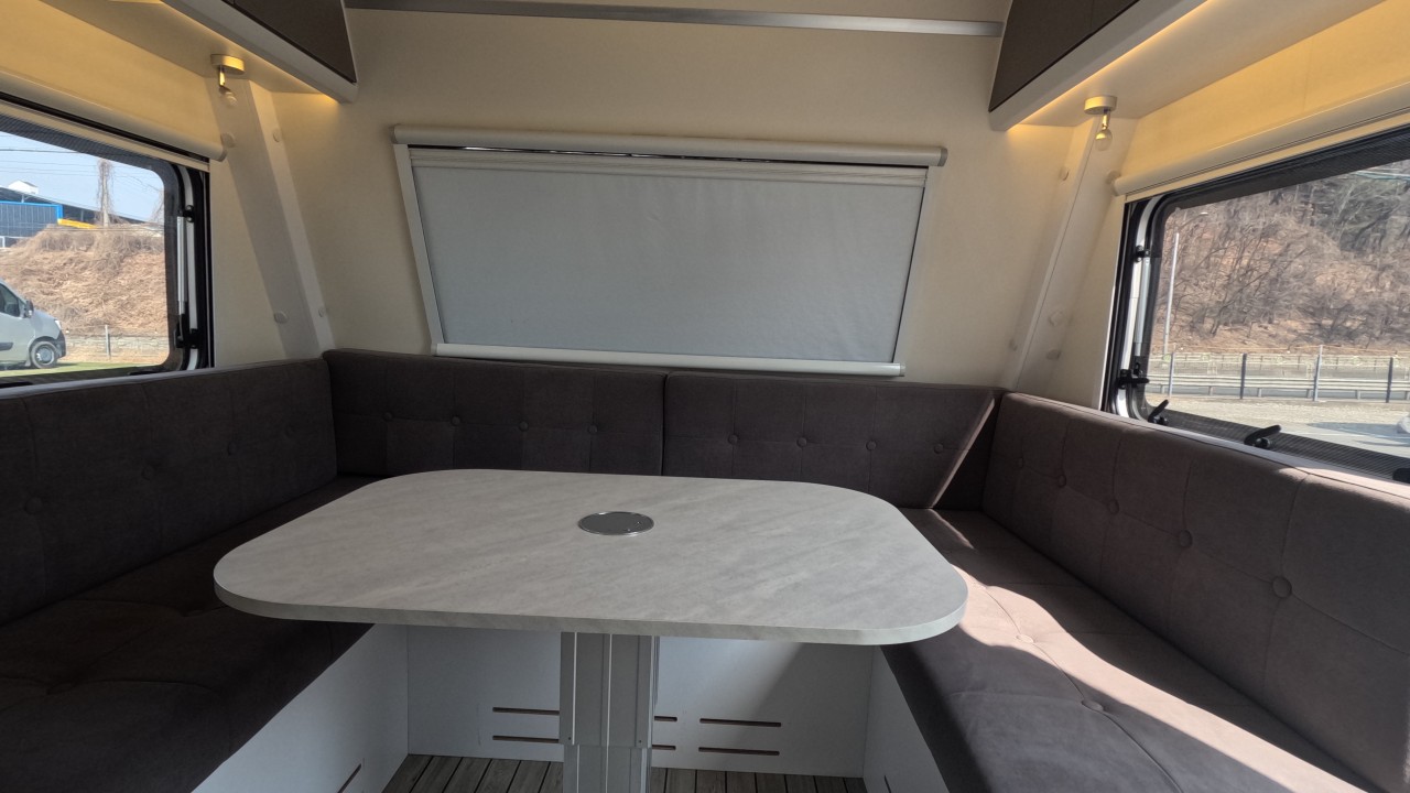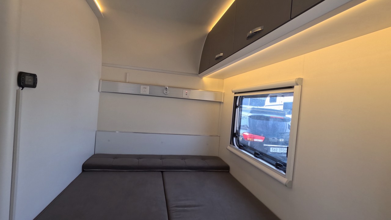 내부 : 벽걸이에어컨, 무시동히터5K, 욕실, 이동식변기, TV, 냉장고100L, 전자렌지, 인덕션, 개수대, 청수100L, 이동식 오수통