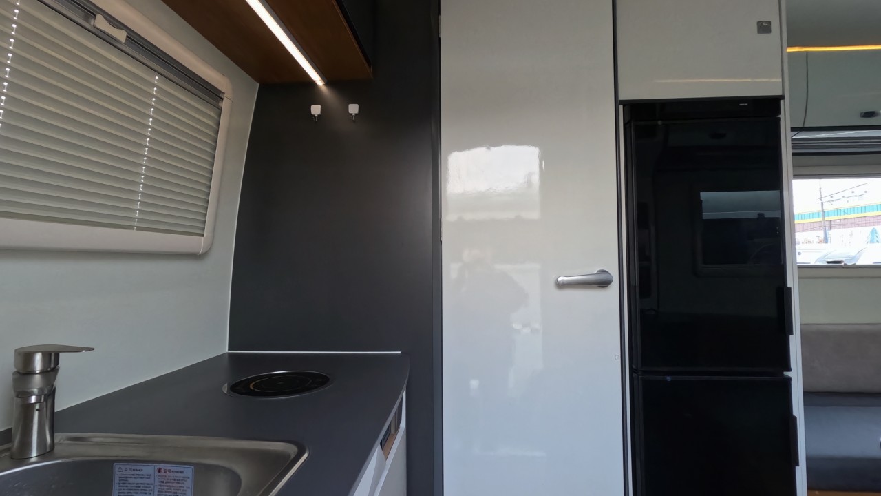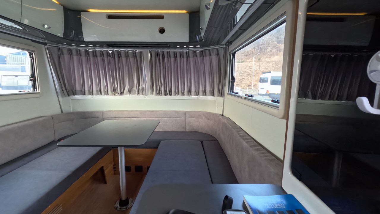 내부 : 무시동히터5K, 경유온수기, TV, 냉장고130L, 전자렌지, 인덕션, 맥스팬, 벽걸이에어컨, 개수대, 청수120L, 오수40L, 욕실