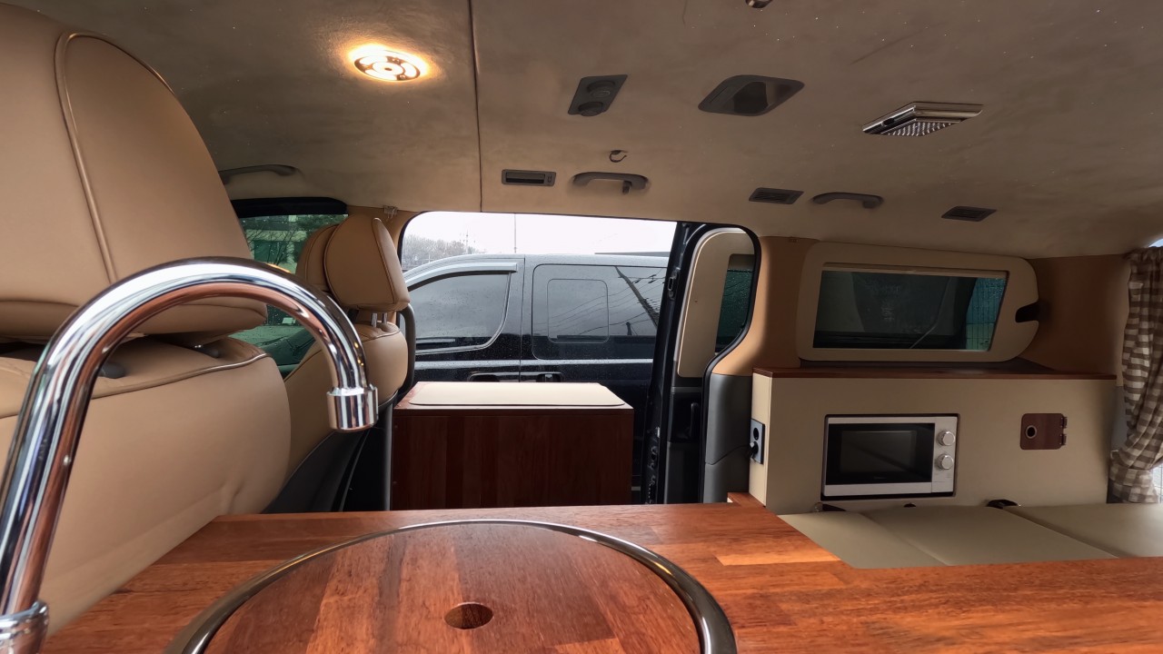 내부 : 무시동히터2K, 냉장고45L, 전자렌지, 개수대, 은하수무드등, 리무진시트, 멀티시트, 빔프로젝트