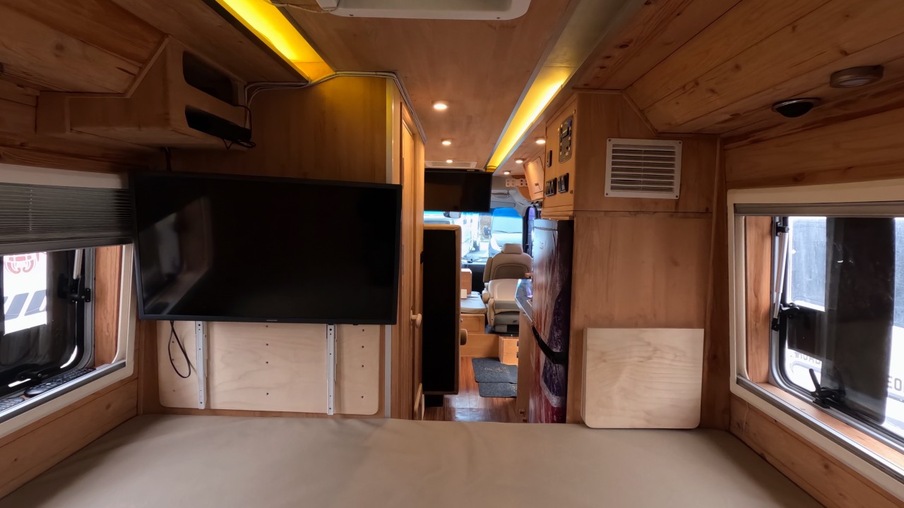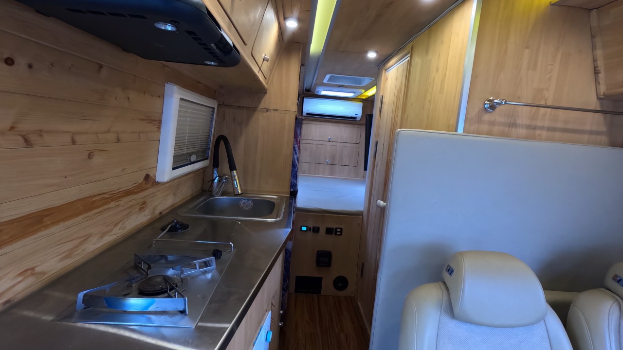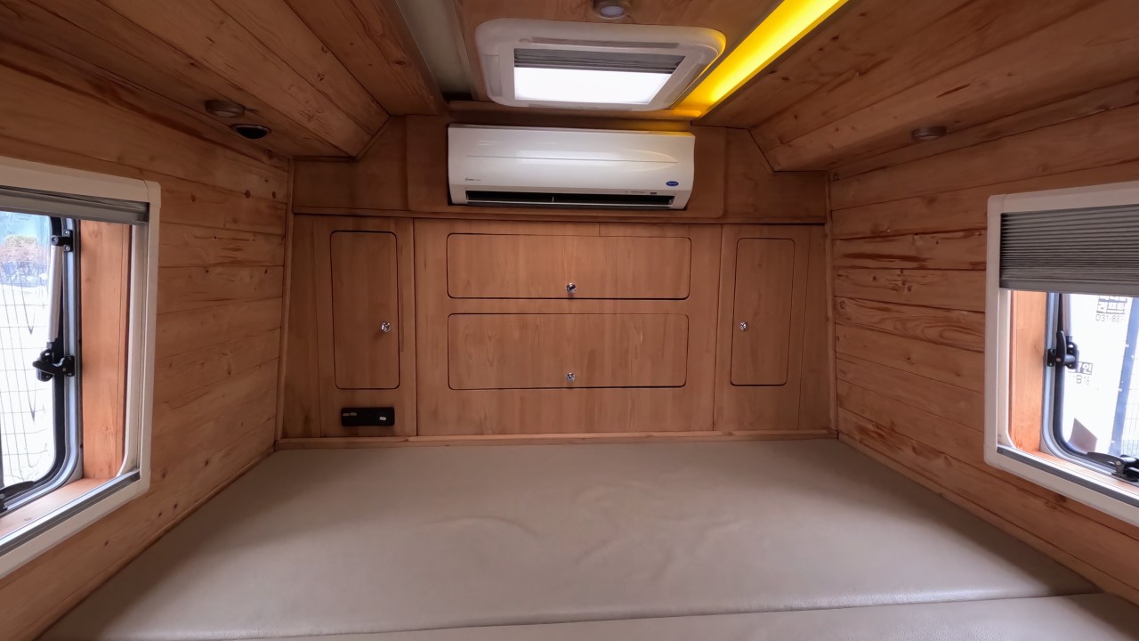 내부 : 맥스히터, 온수, 바닥난방, TV, 냉장고150L, 가스렌지, 전자렌지, 개수대, 청수200L, 오수100L, 욕실, 맥스팬2개, 고정식 변기, 주방환풍기, * 2023년 JJRV 전체 리모델링