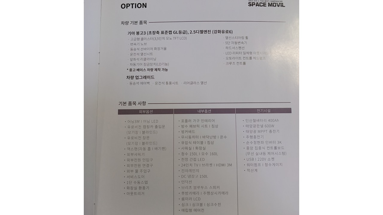 ▶ 하부보강, 리무진시트,자전거캐리어,인산철600A,바닥난방D5,무시동에어컨,고정식변기등 옵션풍부
